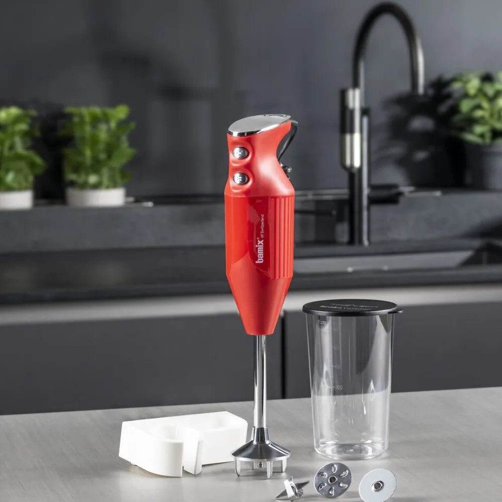 bamix® Mono-stavblender med en kraftig 200 watt motor, der sikrer pålidelig hjælp til selv de hårdeste opgaver i køkkenet. Stavblenderen har to hastighedsindstillinger og en praktisk ledning, der giver masser af fleksibilitet. Til produktet medfølger multifunktionskniv, blenderskive, piskeskive, bæger med låg 600 ml og vægholder samt en instruktionsmanual. Livstidsgaranti på motor.