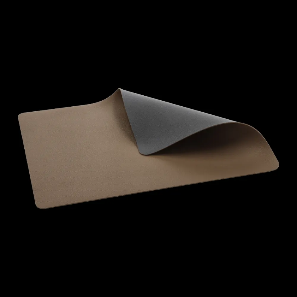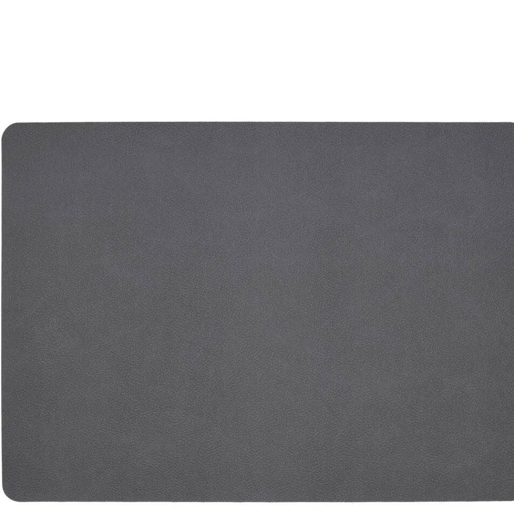 Vendbare dækkeservietter i praktisk vaskbart læderlook giver borddækningen et råt og moderne udtryk. Wood/Titanium.