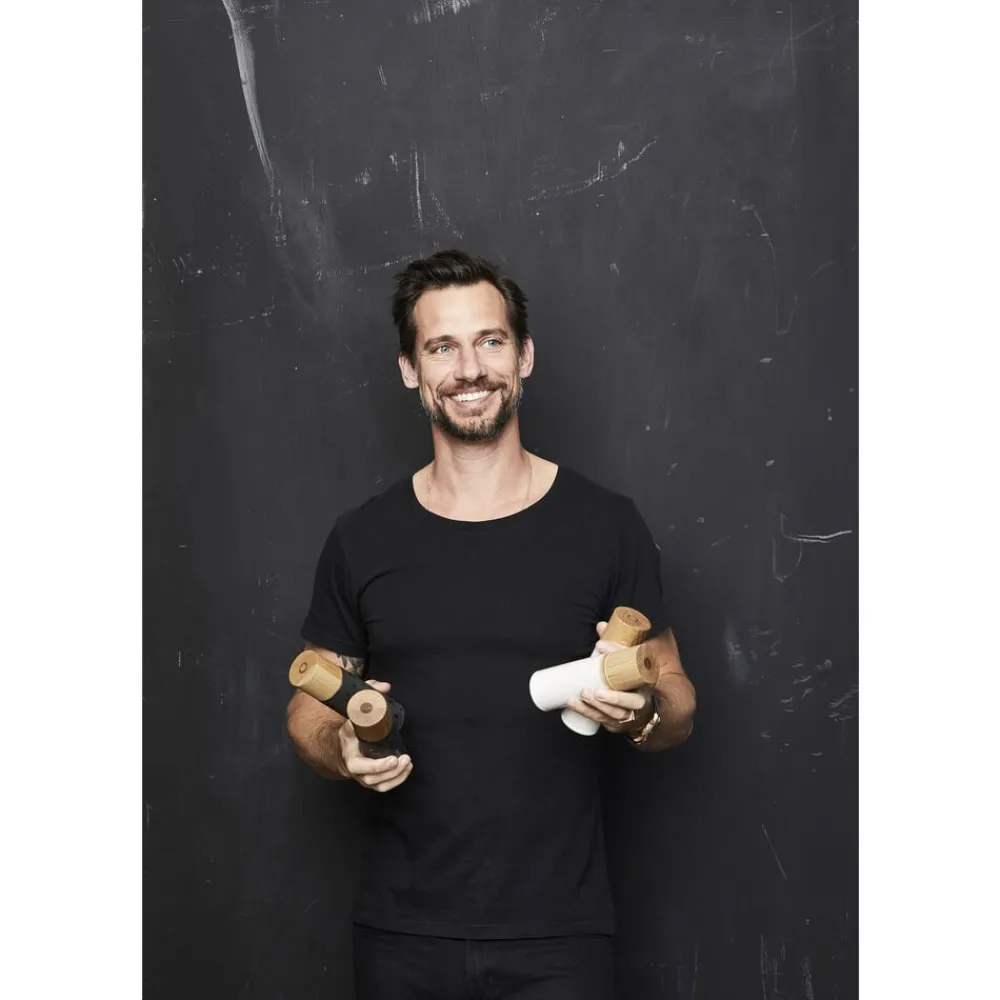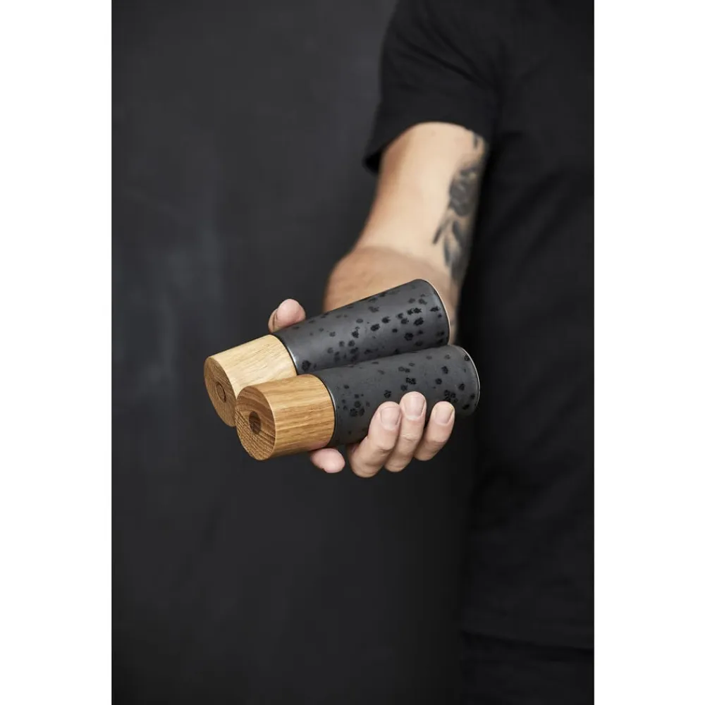 Designet er enkelt og elegant, og kværnene ligger godt i hånden. Kværnene er forsynet med keramisk kværnværk med 5 års garanti. Vi anbefaler, at egetræstoppen løbende vedligeholdes med neutral olie, så træets glød bevares.
