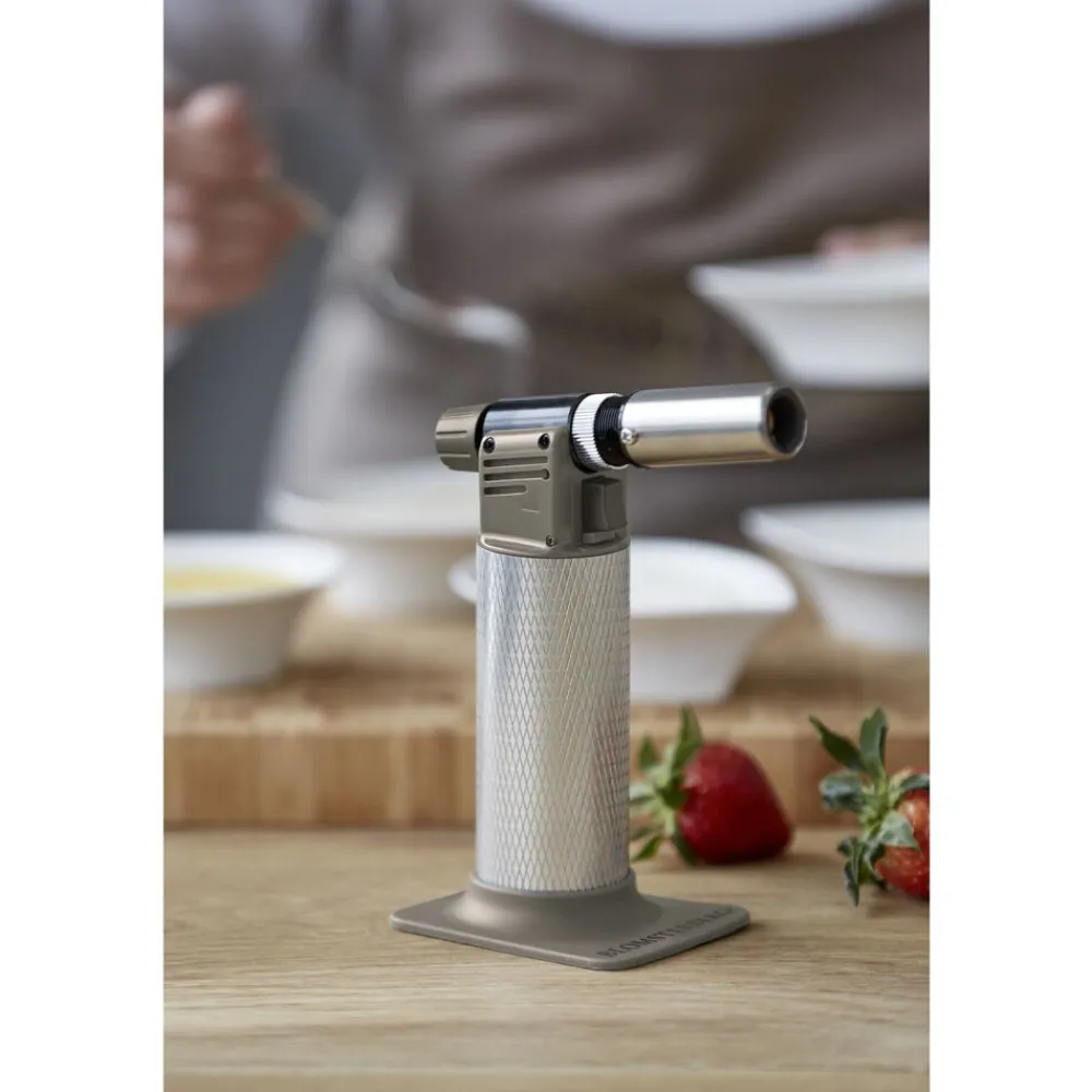Til dig som gerne vil karamellisere, flambere eller smelte på få sekunder. Med denne fine gasbrænder rammer du præcis dér, hvor sukkeret skal blive sprødt, osten skal smelte eller marengsen skal have farve. Brug den direkte på tallerkenen, i formen eller hvor det passer bedst. Gasbrænderen har elektronisk tænding, justerbar flamme og kan bruges fra alle vinkler. Den er nem at genfylde med almindelig lightergas.
