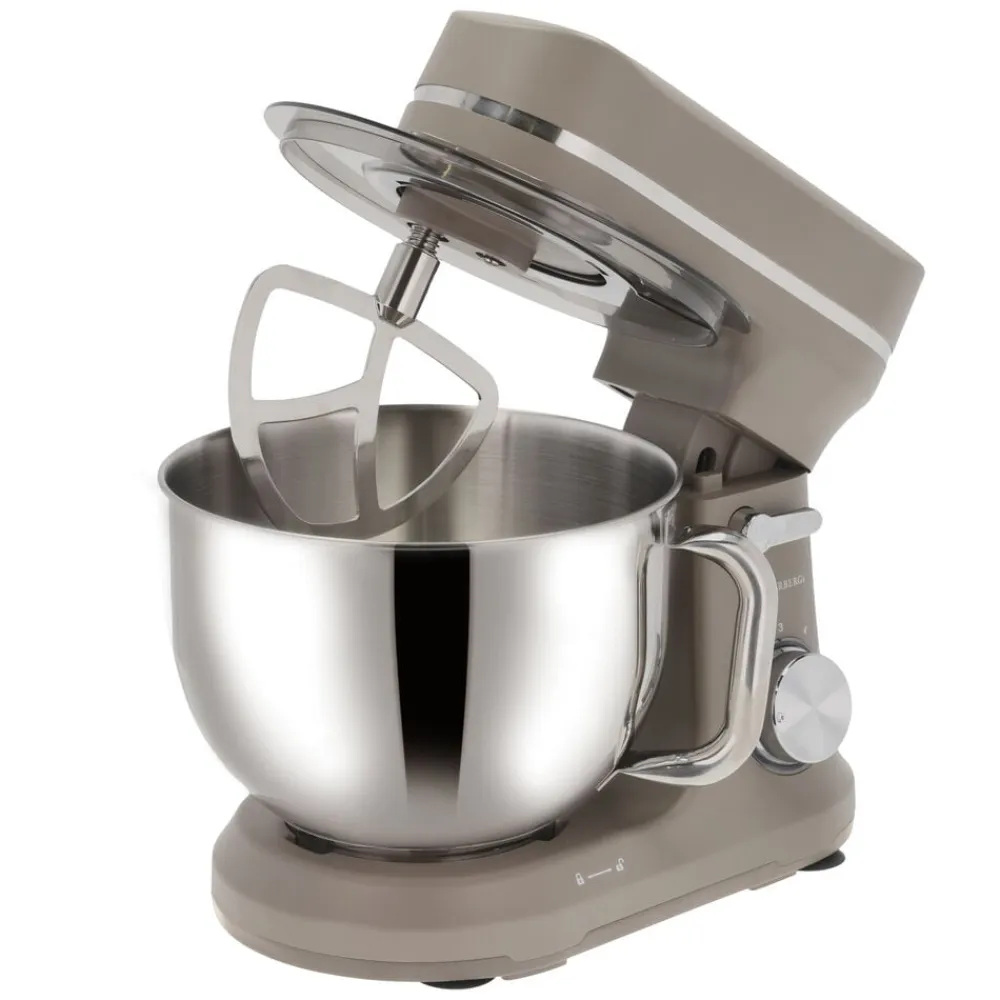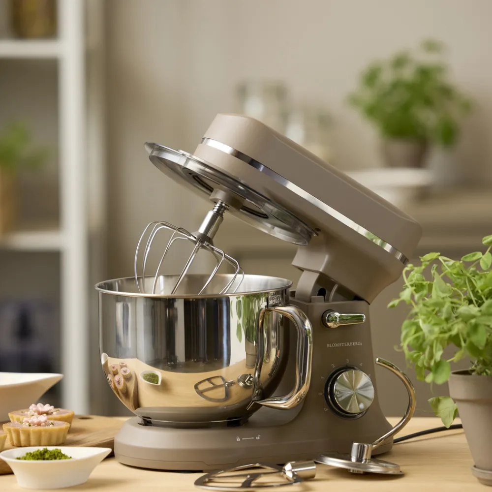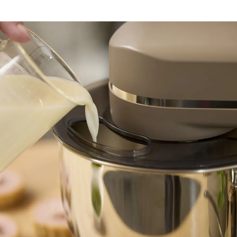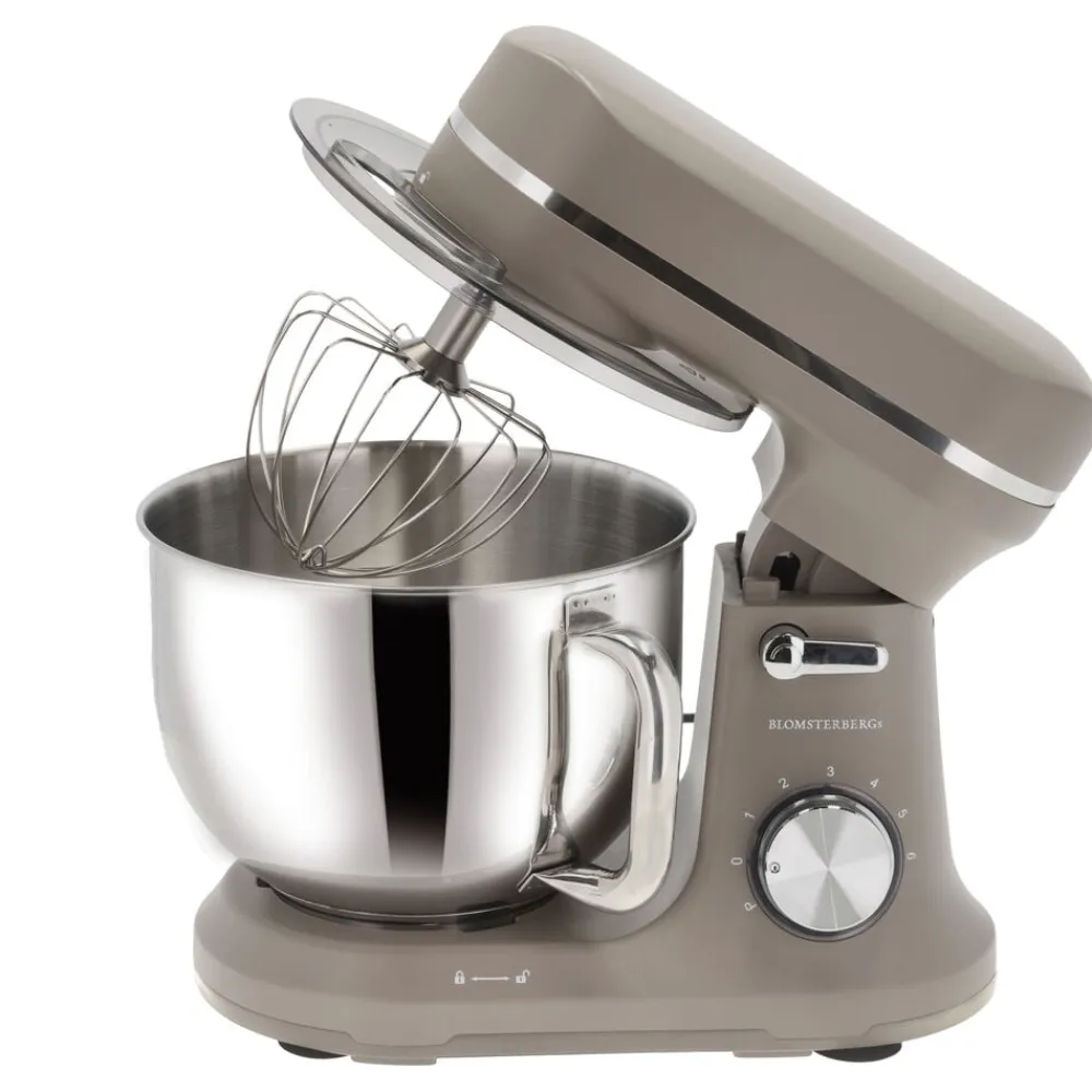 Flot og effektiv røremaskine med en støjsvag 800 watt motor, 6 hastighedsindstillinger og en rummelig 5-liters røreskål i rustfrit stål, som er ideel til både små og store opgaver i køkkenet. Røremaskinen har en kapacitet på maks. 1,5 kg. Takket være maskinens kompakte størrelse, fylder den ikke meget på køkkenbordet. Piskeris, dejkrog og fladpisker i rustfrit stål medfølger. Et piskeris som pisker æggehvider, kagecreme eller en luftig flødeskum. Dejkrogen gør det nemt at ælte dej, uanset om det er til sunde boller, pizzadej eller anden smidig dej. Fladpiskeren gør det nemt at røre kagedej eller frikadellefars.