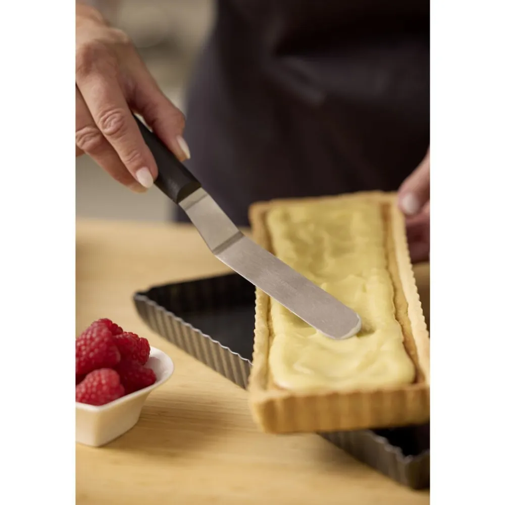 Rektangulær tærteform til alle typer dessert- og madtærter. Den løse bund gør det let at få tærten ud i et helt og pænt stykke – klar til servering. Non-stick belægningen sikrer, at dejen slipper let, men for det bedste resultat anbefales det altid at smøre formen med lidt bagespray eller en smagsneutral olie. For at beskytte belægningen anbefales det at bruge redskaber af træ, silikone eller plast samt at vaske tærteformen op i hånden.
