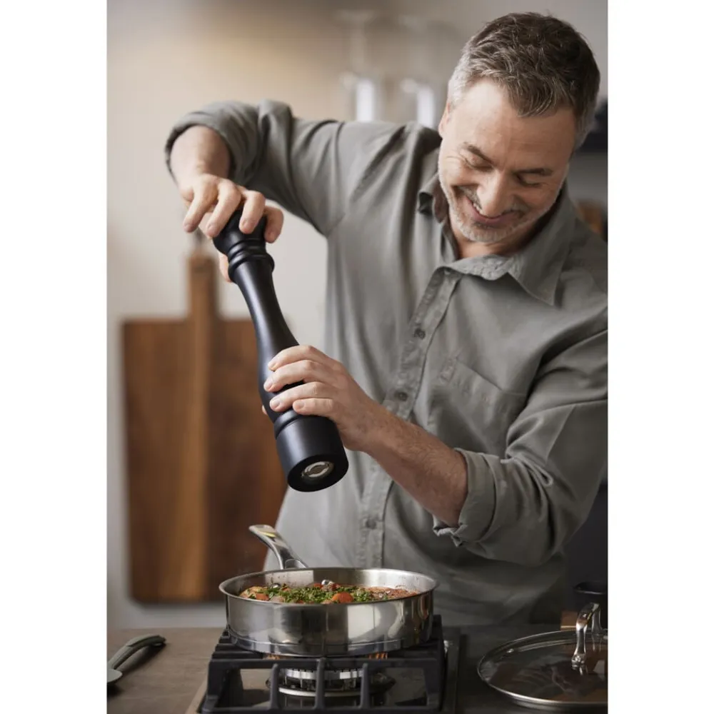 Nyd den skønne smag af friskkværnet peber. Kværnen er fremstillet af naturligt akacietræ, har en unik keramisk kværnindsats, og malingsgraden justeres nemt i toppen af kværnen, så du selv kan bestemme, hvor groft eller fint du ønsker at kværne. Tørres over med en fugtig klud. 40 cm høj.