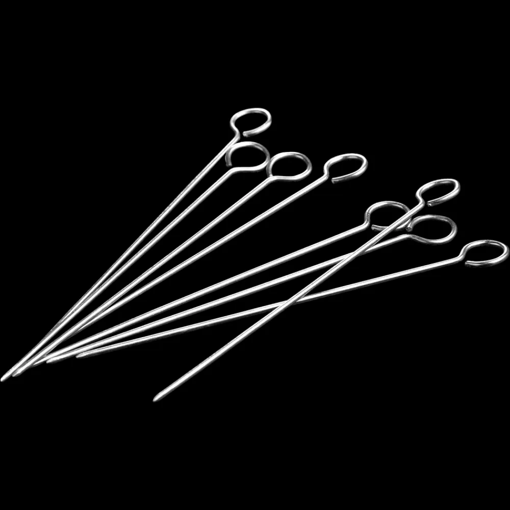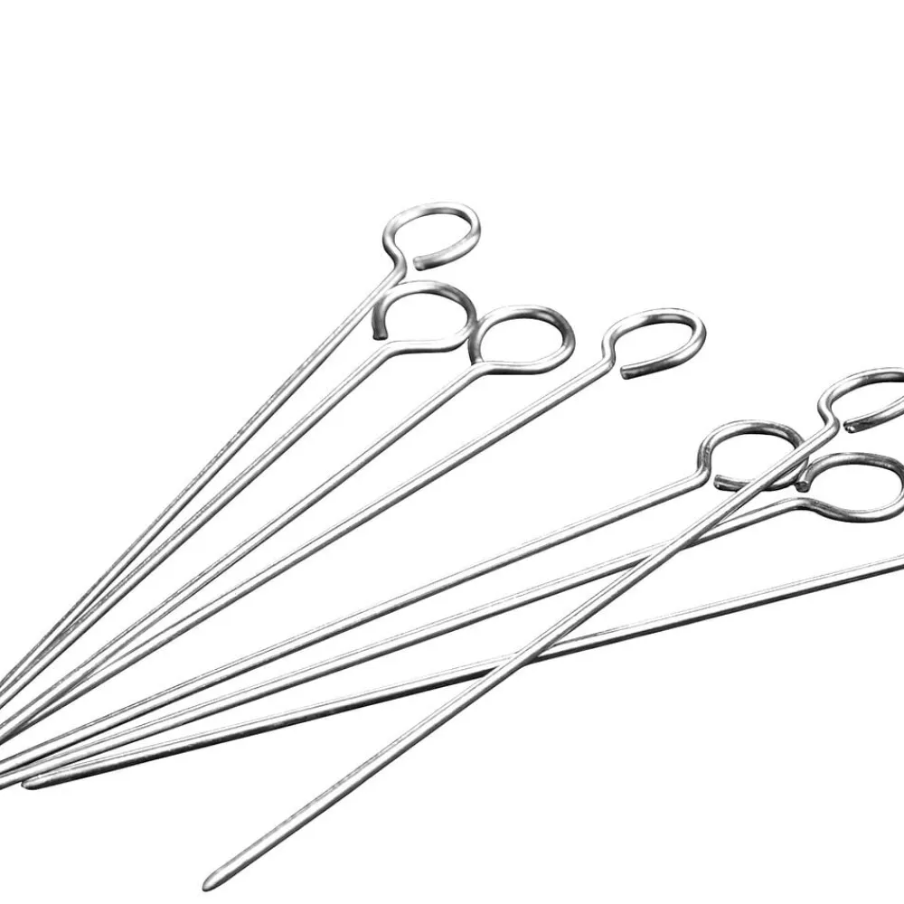 8 kødnåle i stål fra Funktion. Kødnåle kan bl.a. bruges til at holde sammen på kød, fx en steg med fyld, og tjekke, om kagen i ovnen er færdig. Stik nålen ned i midten af kagen. Hvis nålen er ren, er kagen færdig. Kan vaskes i opvaskemaskine.