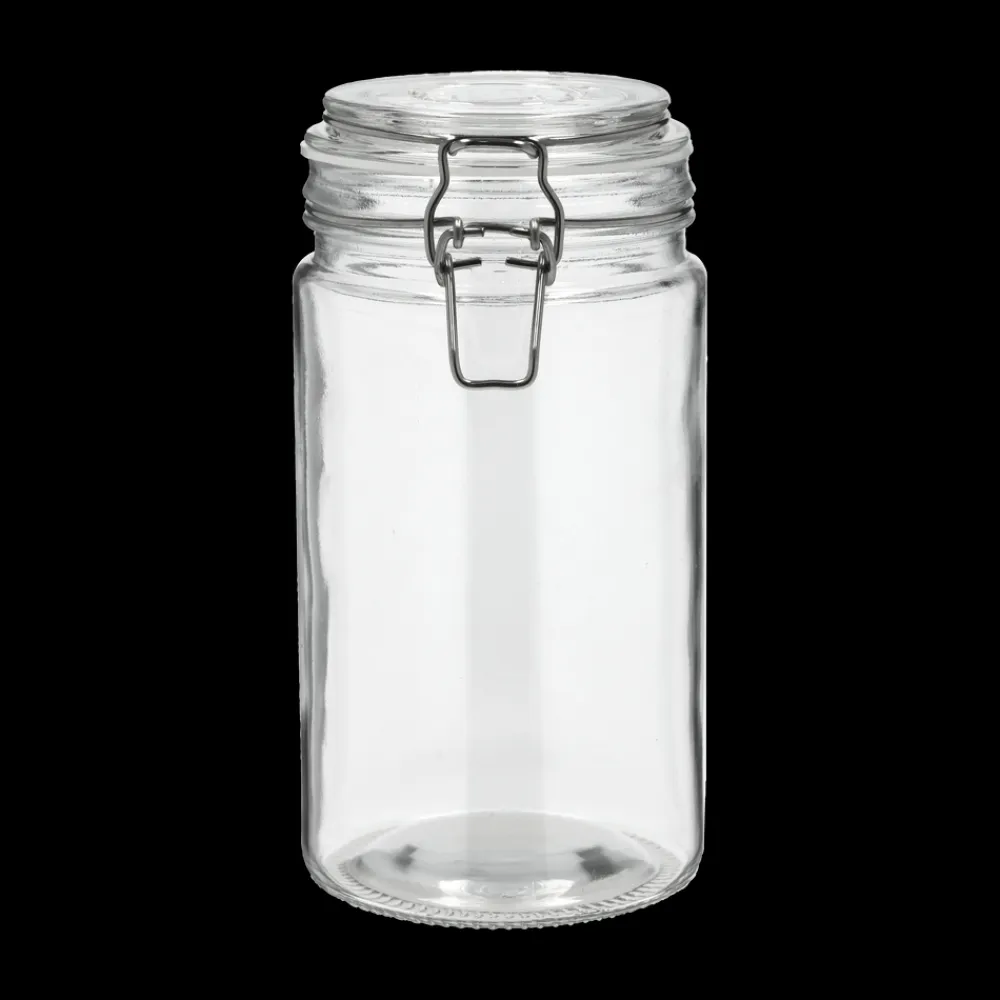 Sylteglas med patentlukning. Låg med tætsluttende silikonering og lås af rustfrit stål.