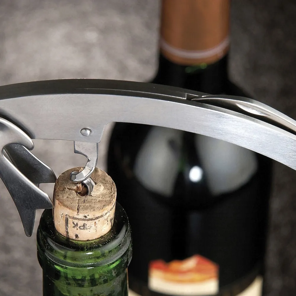 Klassisk tjenerværktøj i stål med indbygget folieskærer.