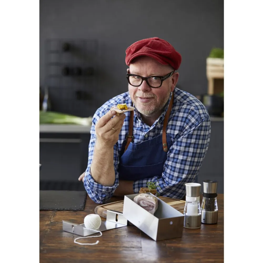 Med fokus på holdbarhed og funktionalitet er HOLM rullepølsepresse skabt til at blive brugt – igen og igen. De robuste vingeskruer og det højkvalitets rustfri stål gør det nemt at opnå det ønskede pres, samtidig med at pressen holder sig flot og funktionel i mange år. Den er et perfekt valg til både nybegyndere og erfarne madentusiaster, der ønsker det bedste til deres køkken.