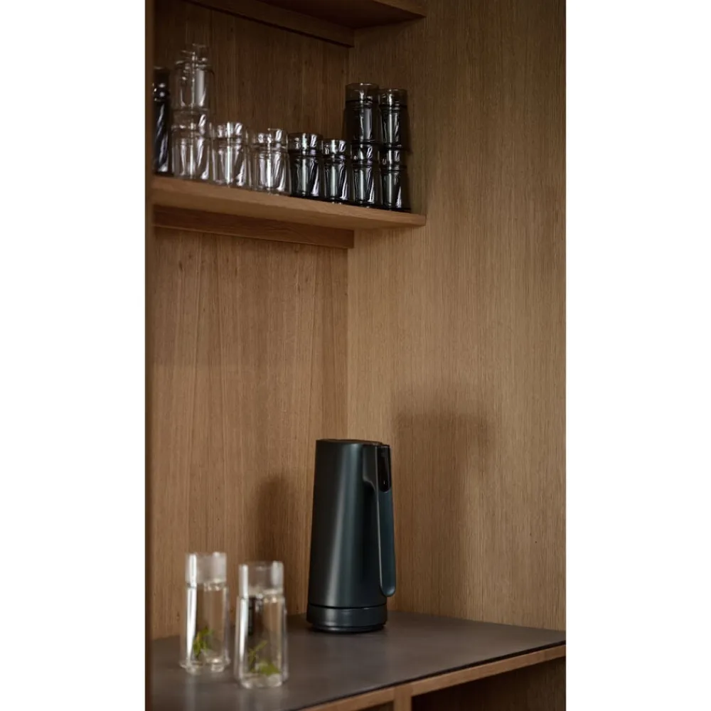 Jacob Jensen elkedel sætter en ny standard, når det gælder opvarmning af vand til din kaffe eller te. Den er fremstillet af solide materialer i en elegant form. Elkedlens display vækkes til live, når din hånd nærmer sig, og går i dvale, når kedlen ikke er i brug. Den har en kapacitet på 1,2 liter vand, og med syv forudindstillede temperaturindstillinger, der spænder fra 70 °C til 100 °C, kan temperaturen styres via touch displayet. Det digitale display gør det nemt at overvåge den aktuelle vandtemperatur, mens en blid tone signalerer, når dit vand har nået den ønskede temperatur. Derudover sikrer funktionen “Keep Warm”, at vandet bevarer den valgte temperatur, indtil kedlen fjernes fra basen.