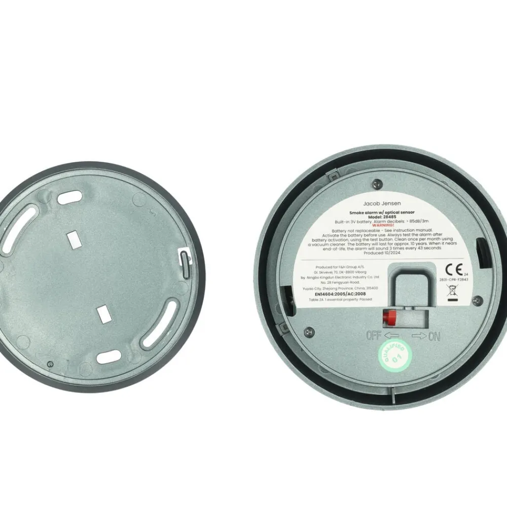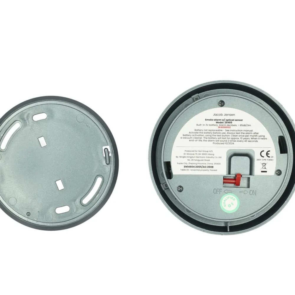 Jacob Jensens optiske røgalarm er skabt til at skabe tryghed, så den samtidig tilføjer et strejf af elegance til dit hjem i form af det innovative design. En konstant pulserende lysstråle detekterer røg. Hvis lysstrålen brydes af røgpartikler, vil alarmen lyde. Integreret batteri med en levetid på 10 år. Denne røgalarm er en uafhængig enhed og kan ikke serieforbindes.