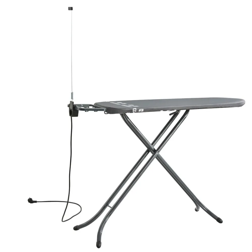 Airboard M Plus er betydeligt lettere end mange andre strygebrætter og udstyret med en unik strygeoverflade. Strygeoverfladen på 120 x 38 cm hviler på en stabil ramme, og arbejdshøjden kan justeres mellem 78 og 98 cm. Det specielle betræk med Thermo Reflect-teknologi reflekterer damp og varme fra strygejernet i stedet for at lade det fordampe gennem strygefladen. Takket være den tosidede strygeeffekt stryges tøjet på begge sider på samme tid. Airboard M Plus er både nemt at stille op og folde sammen igen. Strygebrættet er desuden udstyret med en fast strygejernsstøtte, en stikkontakt og en kabelholder, så ledningen ikke er i vejen for strygningen. 5 års garanti.