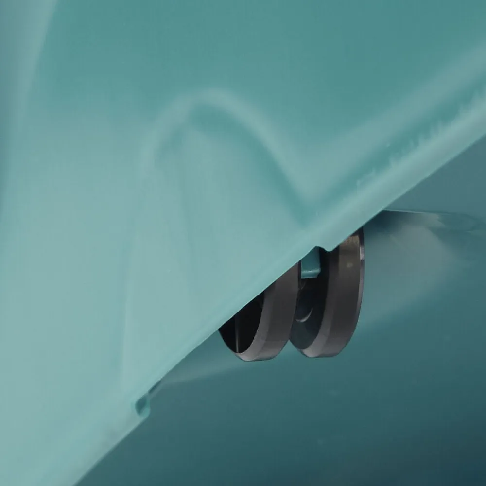 Spanden har to letrullende hjul og skubbes nemt omkring.