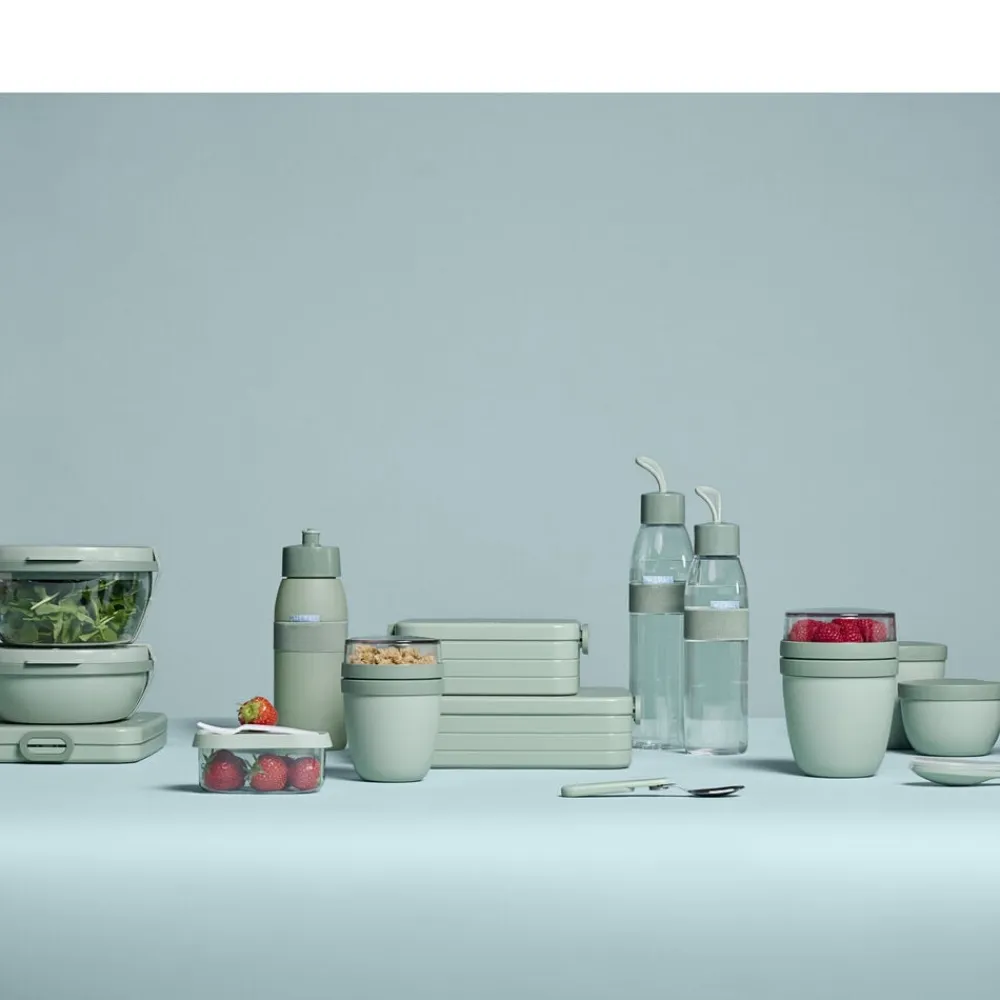 Flot og robust To Go-vandflaske med smart elastisk “mavebælte” og praktisk strop i låget. Velegnet til opvaskemaskine.