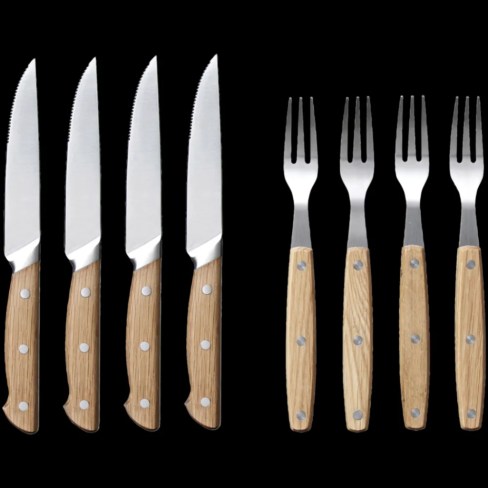 Bestiksæt med 4 steakknive og 4 steakgafler. Sættet er velegnet til udskæring af en god bøf. Det kan også bruges til en lækker pizza.