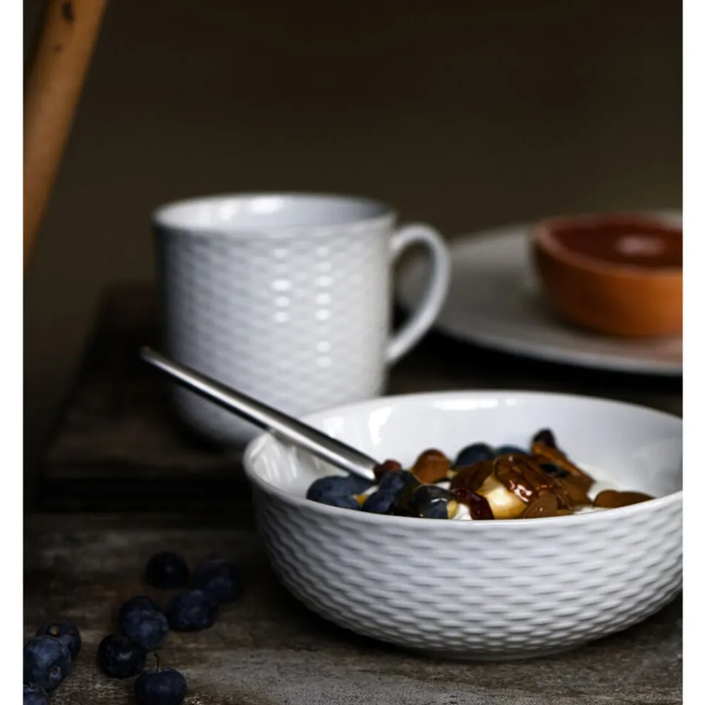 Porcelænsserien Basket er sprødt, hvidt porcelæn med en elegant dekoration, udført som en subtil, detaljeret vævning, inspireret af klassisk kurveflet. Basket puster liv i din daglige borddækning og er samtidig elegant nok til livets særlige lejligheder.