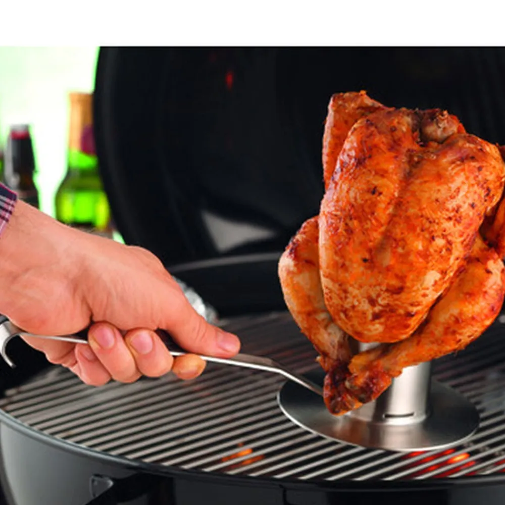 Kyllingeholderen er ideel til grillet kylling, ænder eller andet fjerkræ. Beholderen på 250 ml kan fyldes med marinade og væsker, såsom øl, for at give fjerkræet smag. Holderen kan bruges på lukkede grill eller i ovnen.