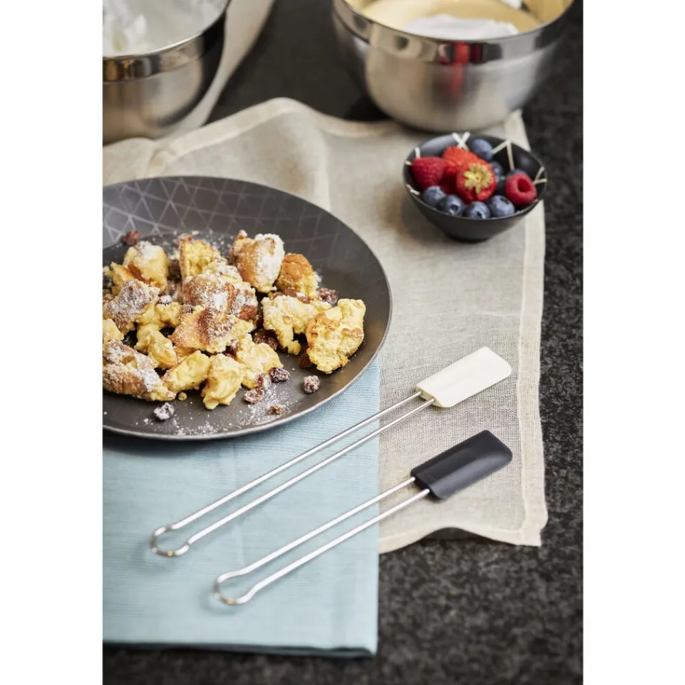 RÖSLE dejskraber med slidstærk silikone klarer temperaturer fra -30 °C til +230 °C samt fedtstoffer, olie m.m. Den fleksible side af silikonebladet tilpasser sig skålens form, mens den hårdere side er perfekt til at udglatte. Tåler opvaskemaskine.