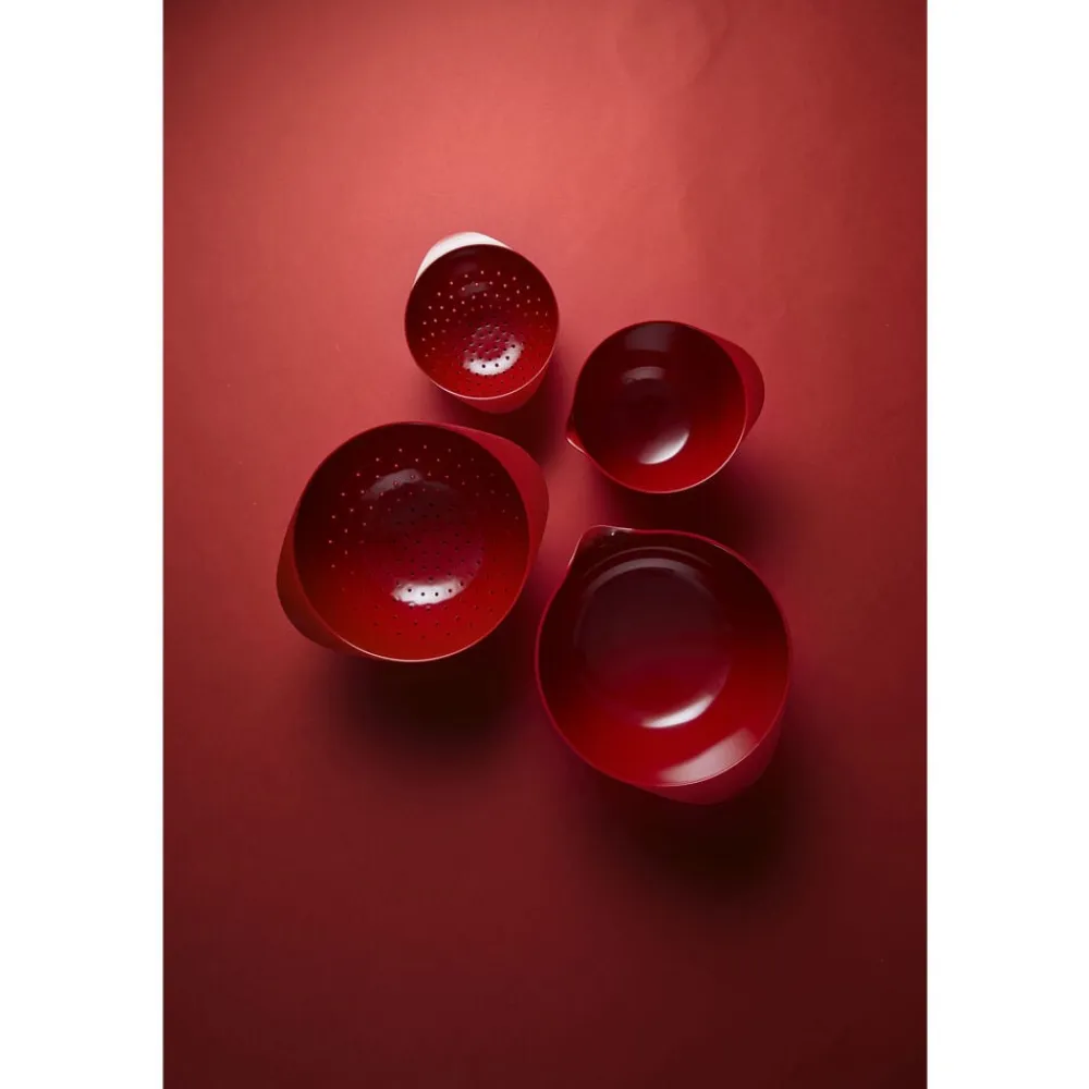 Rosti-dørslaget er perfekt sammen med Margrethe-skålen i samme størrelse. Vælg en matchende skål eller lav en spændende kombination ved at blande farverne. Fås også i en 4 liters udgave. Velegnet til opvaskemaskine, men kan ikke bruges i mikroovn og fryser. Holder formen selv ved opvarmning, hvilket er en stor fordel i forbindelse med madlavning. 5 års garanti.