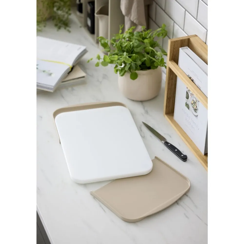 Bakkesættet passer til Separa professionelle skærebræt. Separa-konceptet består af et solidt og holdbart skærebræt, som hviler i to bakker. Konceptet gør hverdagen nemmere og hjælper dig let og intuitivt med at holde de friskhakkede råvarer og affaldet adskilt, når du går i køkkenet og tilbereder maden. Det er ganske enkelt: Affald til den ene side og friskhakket til den anden side i hver sin bakke, der er lige lette at tømme.