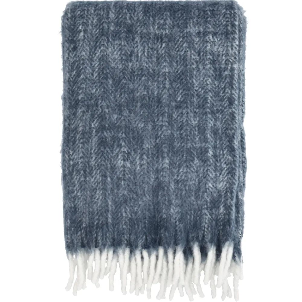 Strikmønstret er et traditionelt, tidløst sildebensmønster. Tæppet er af akryl og ekstra stort, 150 x 200 cm, med lange, tykke frynser i begge ender.