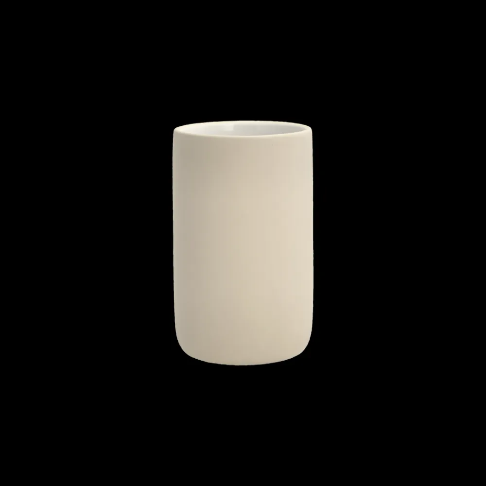 Södahls matte badserie har soft rubbercoating all over, også på sæbedispensertud og toiletbørsteskaft. Kruset er med lækker blank glasur indvendigt.