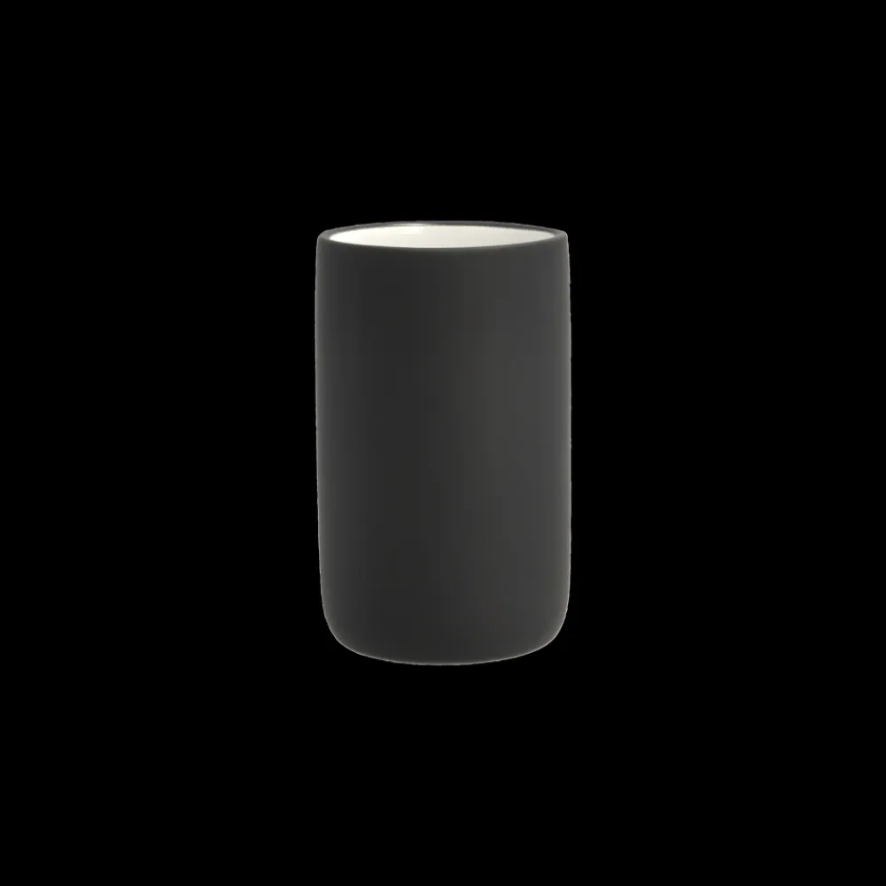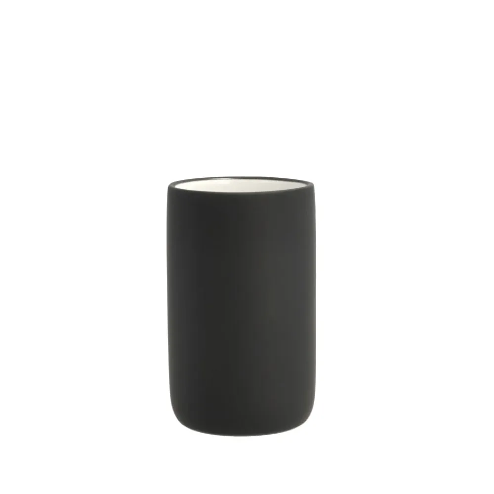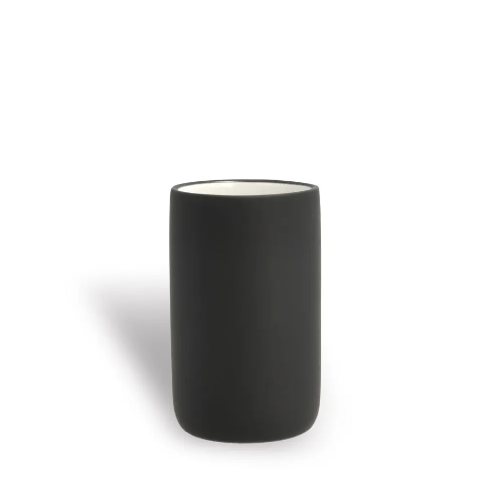 Södahls matte badserie har soft rubbercoating all over, også på sæbedispensertud og toiletbørsteskaft. Kruset er med lækker blank glasur indvendigt.