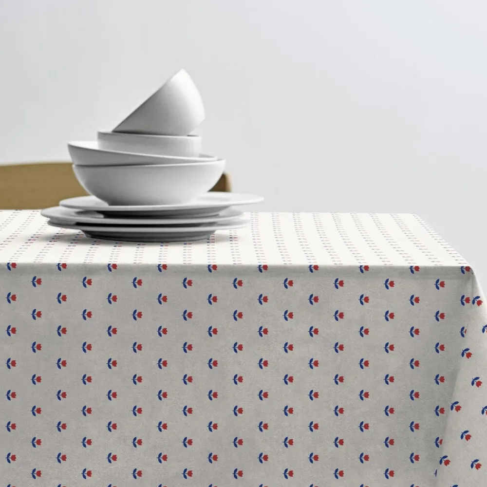Med et charmerende print af små tulipaner i et tæt mønster tilføjer denne dug en herlig vintage-stemning og forfriskende coolness til din spisestue.