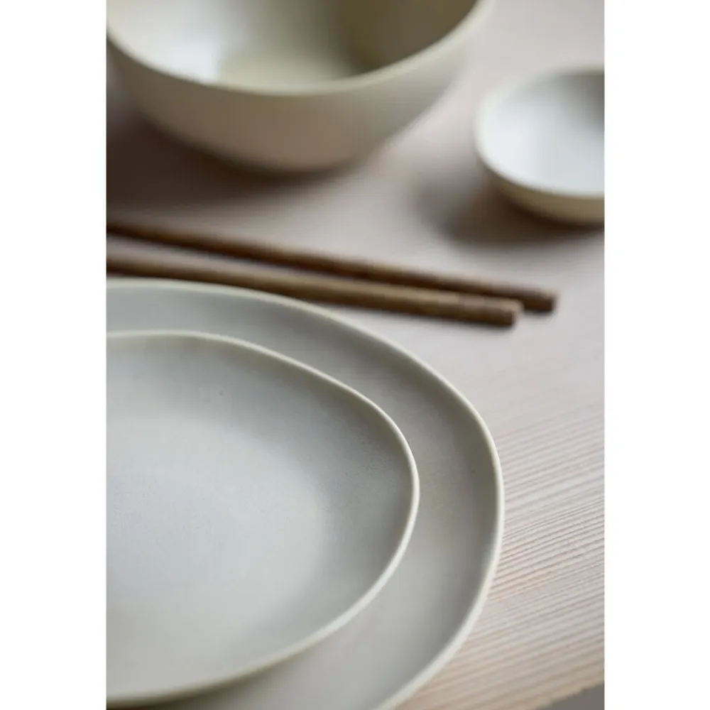 Shoku-stellet forener japansk minimalisme med skandinavisk enkelhed. Med sine organiske former og dæmpede farver skaber Shoku en harmonisk og rolig atmosfære omkring bordet. Stellets dele er designet med rene linjer og silkeblød, mat og blank glasur, der understreger en naturlig æstetik og løfter måltidets visuelle og kulinariske oplevelse. Shoku betyder mad eller spise på japansk og symboliserer glæden ved både maden og samværet omkring bordet. Med sine holdbare materialer og tidløse design er Shoku-stellet det ideelle valg til både daglig brug og særlige anledninger, hvor skønhed og funktionalitet mødes.