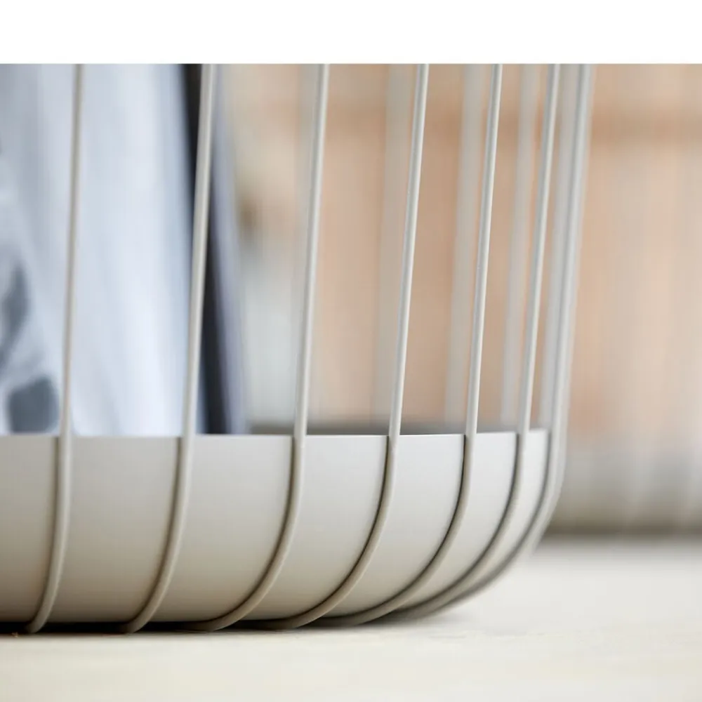 Flot metalkurv til håndklæder eller vasketøj i badeværelset, puder, tæpper og magasiner i stuen – eller til store grønne planter overalt i boligen. Kurvene fås i to størrelser, som kan stables. Det er lækkert interiør, som giver øjet ro.