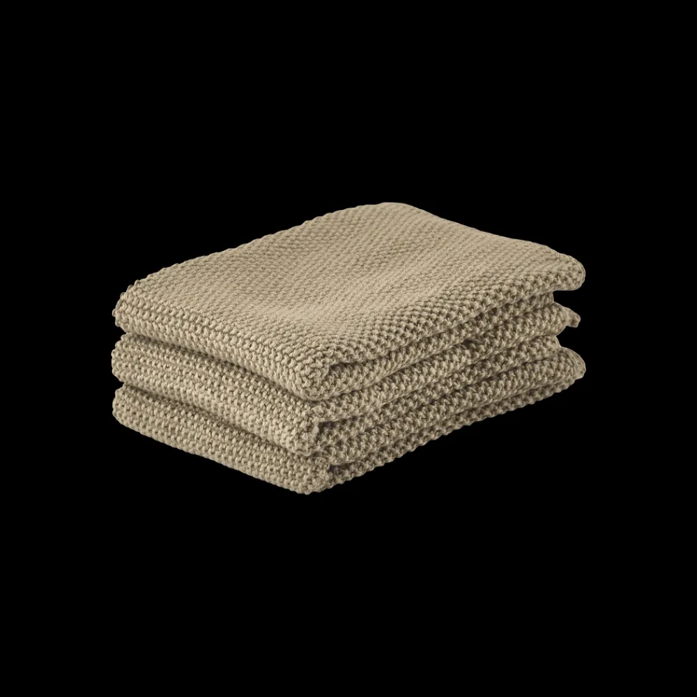 Zones strikkede karklude i 100 % bomuld er helt igennem naturlige – dejligt bløde, praktiske, stærke og uden skyggen af kemikalier og mikroplastik. De er uundværlige i køkkenet, og de fås i bløde sæt med 3 stk. 27 x 27 cm.