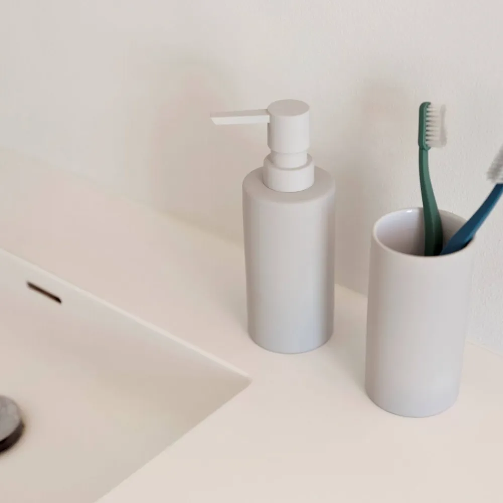 Med Solo badserie er der helt rene linjer. Produkterne er samtidig holdt i rene farver og står rent, flot og funktionelt i badeværelset. Tandbørstekruset er 12,2 cm højt og matcher sæbedispenser, toiletbørste og pedalspand perfekt.