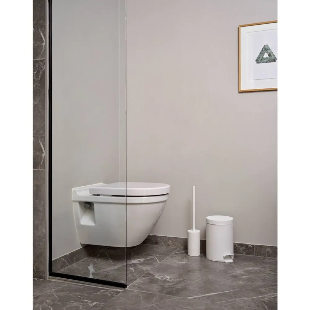 Med Solo badserie er der helt rene linjer. Produkterne er samtidig holdt i rene farver og står rent, flot og funktionelt i badeværelset. Sæbedispenser, tandbørstekrus, toiletbørste og pedalspand matcher hinanden perfekt.