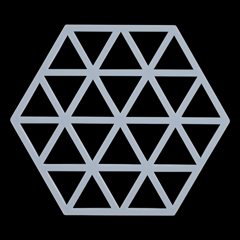 Triangles bordskånerne i silikone er så grafisk dekorative, at de indbyder til at lægge en flok ud i hele bordets længde uden at stille noget på dem. De er varmebestandige op til 250 °C og kan vaskes i opvaskemaskine. 16 x 14 x 0,9 cm.
