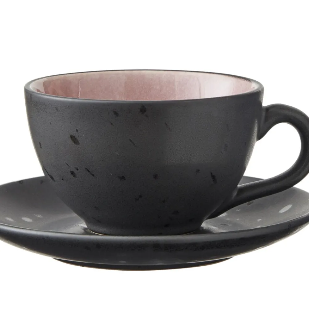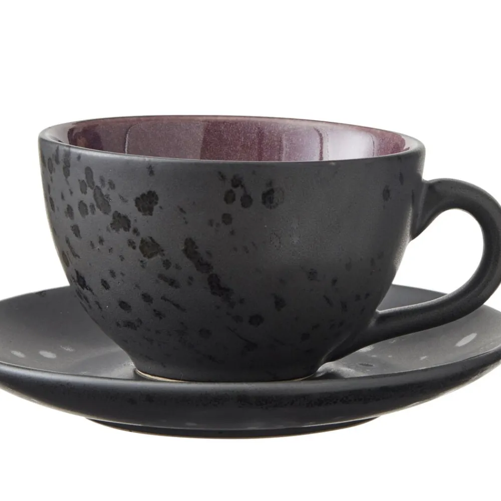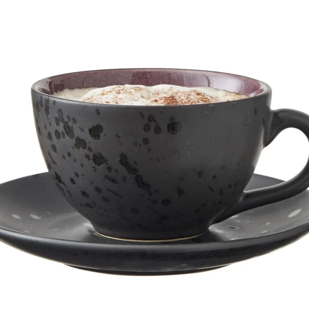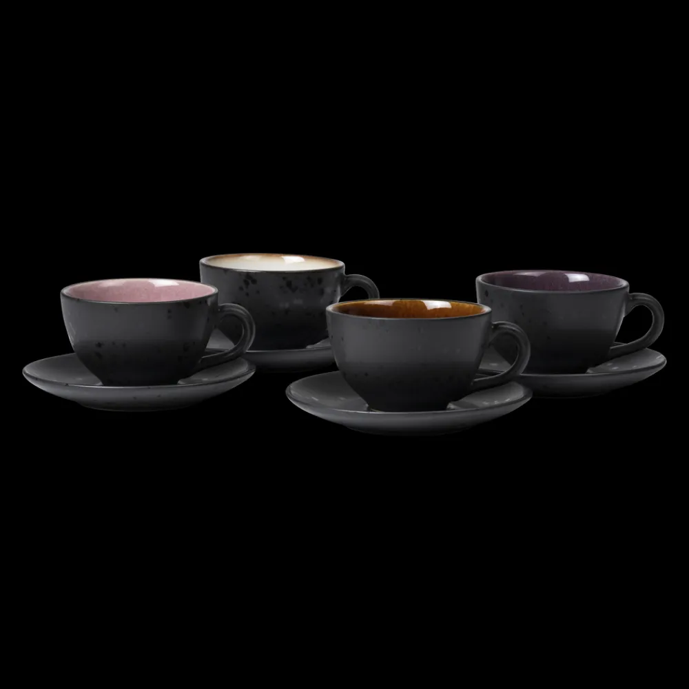 4 stk. Nyd din cappuccino og dine andre kaffefavoritter i den flotte BITZ Kop med underkop. Fremstillet i mat, sort stentøj med blank glasur i amber, lyserød, lilla, creme på koppens inderside. 24 cl, 6 cm høj. Velegnet til maskinopvask, mikroovn og ovn op til 220 gr.