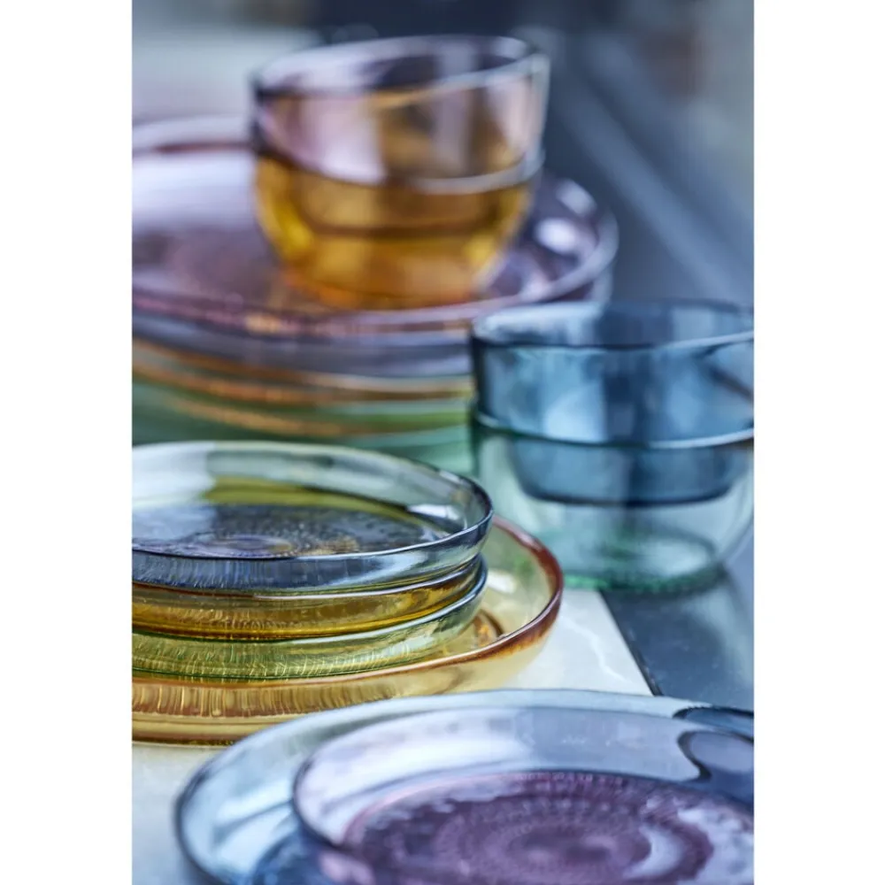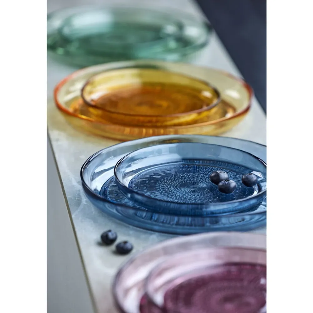 Dæk op med flotte tallerkener i gennemfarvet glas. Brug dem til forretter, salat, desserter, kager eller som et lille serveringsfad. Når du køber fra Kusintha-kollektionen, støtter du samtidig udsatte børn i verdens fattigste områder.