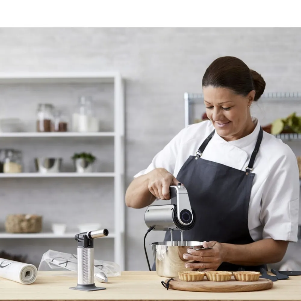 Håndmikseren er designet, så den kan stå oprejst og derved er nemmere at opbevare.