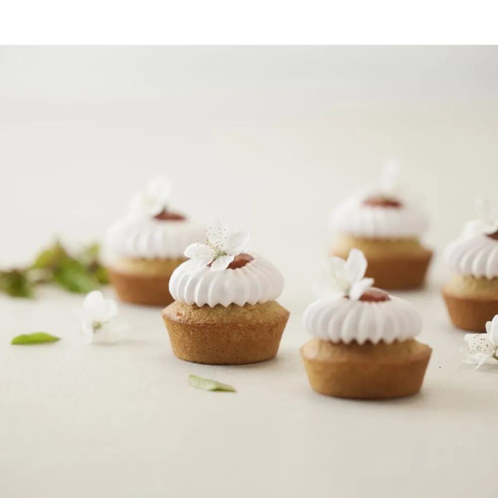 Silikoneform med stabiliserende stålkant. Anvendes til fx små bagte dessertbunde, små rugbrødsboller til madpakken, støbning af iscremer eller skønne muffins. Tåler opvask, ovn (max 220 °C) og fryser (max -20 °C).
