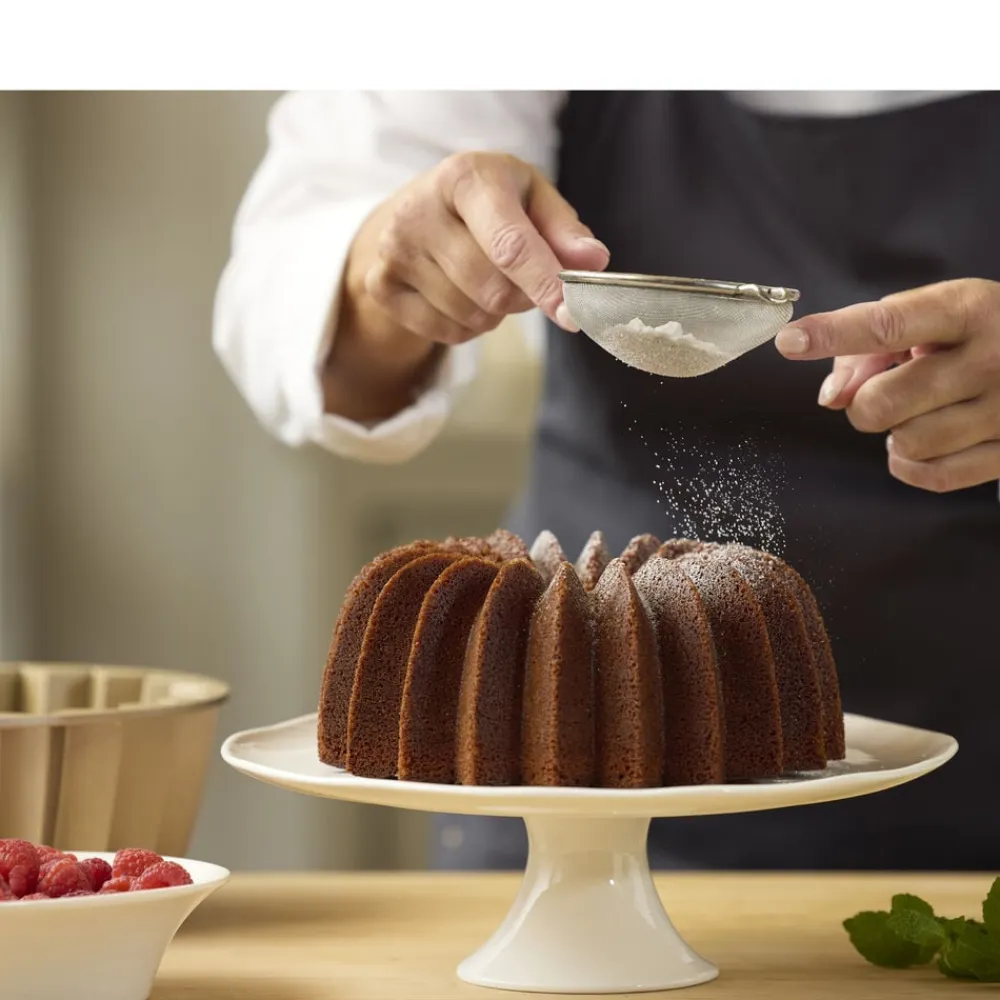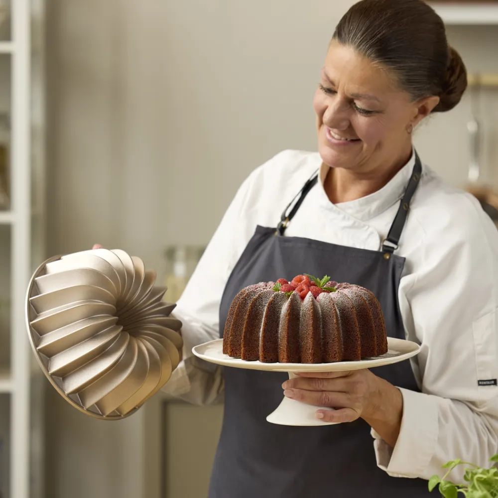 Få din kage til at ligne et kunstværk med denne smukke bundt-kageform. Formen er støbt i holdbart aluminium og har en non-stick-belægning på indersiden, der sikrer, at kagen let slipper formen og bevarer det smukke mønster, når den skal serveres. Tåler ovn (maks. 220°C) og fryser (maks. -24 °C). Velegnet til opvaskemaskine.