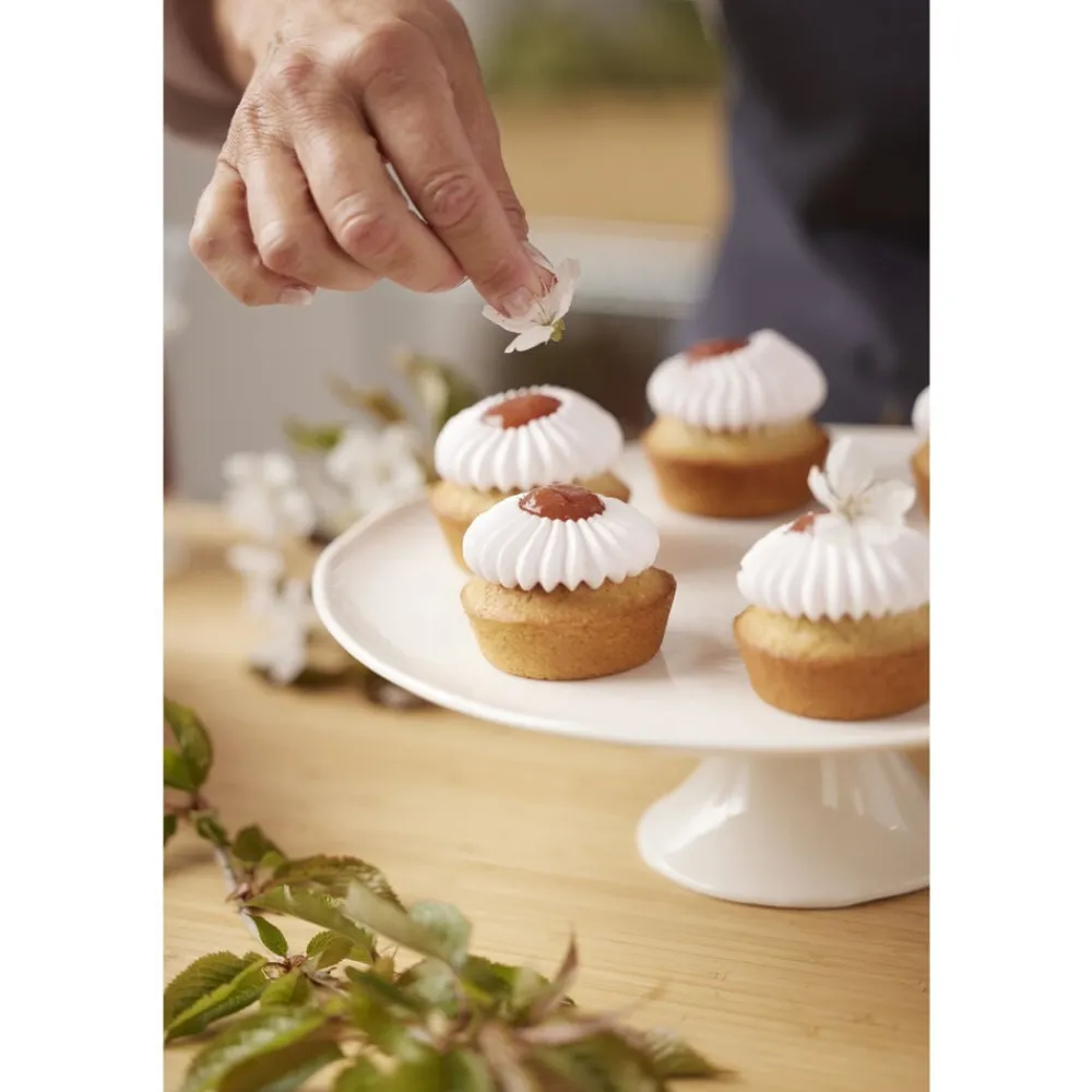De to Sultan-tyller laver en fin stjernekruset ring med et glat hul i midten i to størrelser. Tyllen er rigtig god til marengs, smørcreme, piskede cremer, blød kransekagemasse, blød småkagedej m.m. Pynt f.eks. dine muffins eller tærter med lækker creme og fyld hullet med god marmelade. Det ser både smukt ud og smager superskønt.