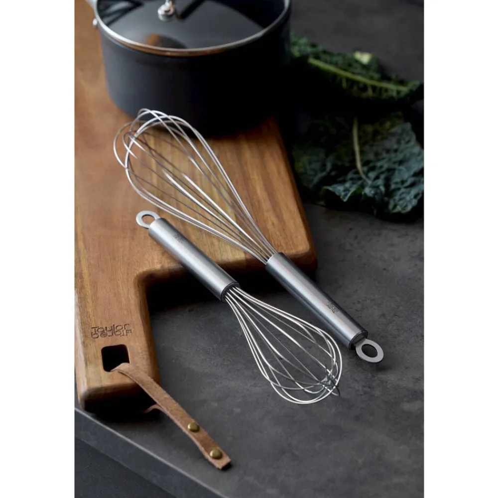 Ballonpiskeris i rustfrit stål, 25,4 cm. Et ballonpiskeris er et musthave i køkkenet og velegnet til at piske luftige deje og cremer, supper og saucer, flødeskum, æggehvider, dressinger og marinader. Piskerisets form gør det meget effektivt til at piske luft i en blanding og sikre en jævn konsistens. Skaftet har en praktisk krog til ophæng.