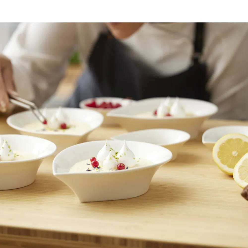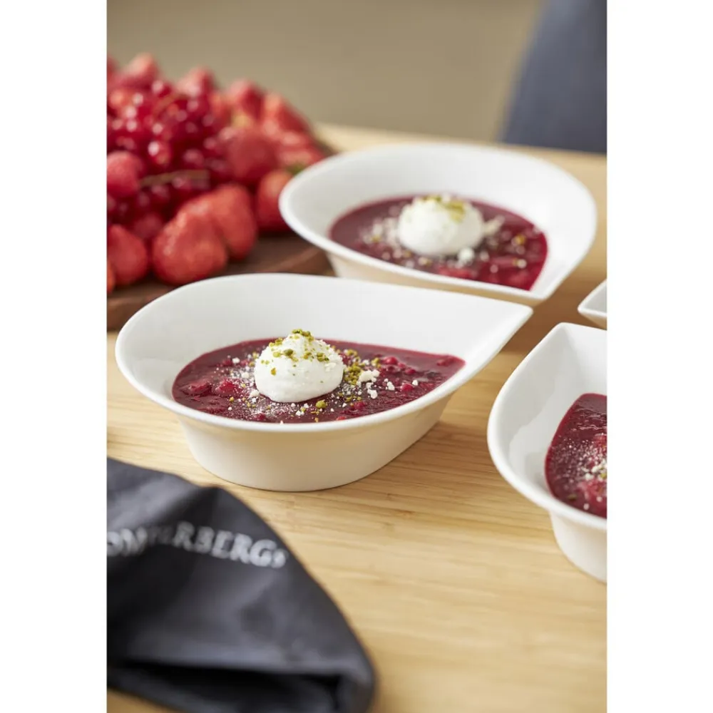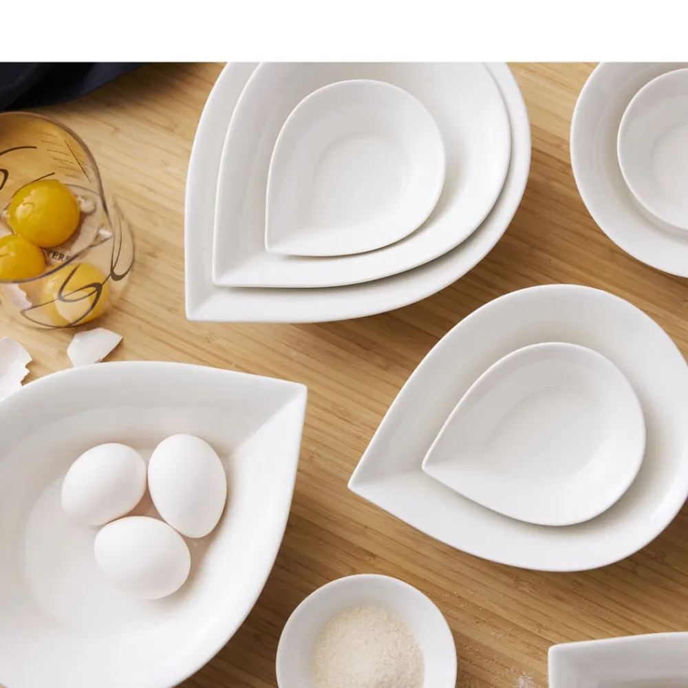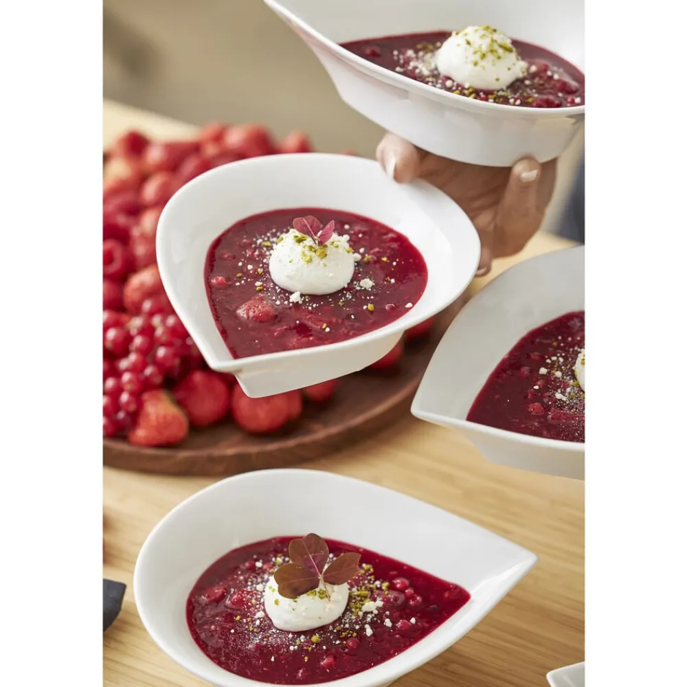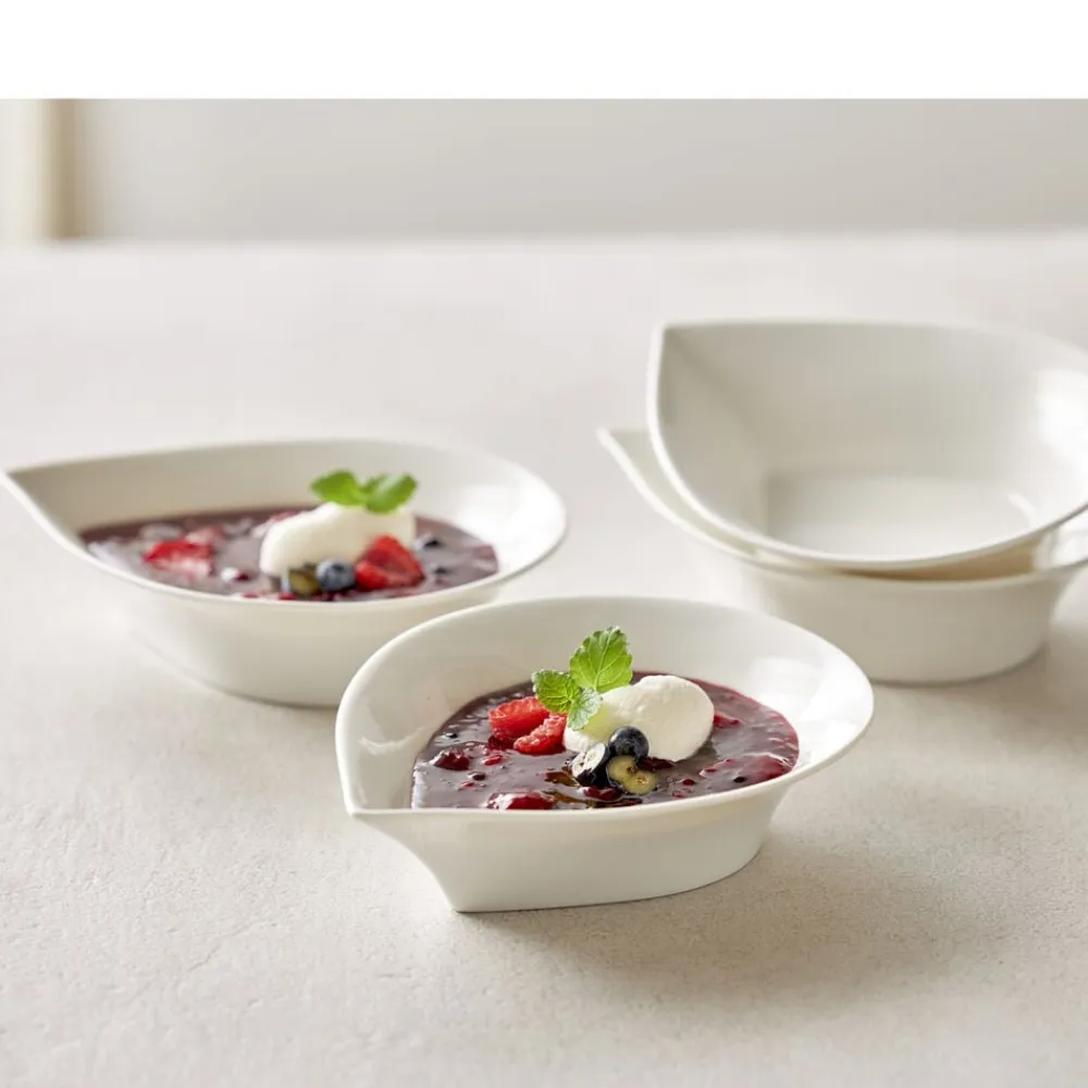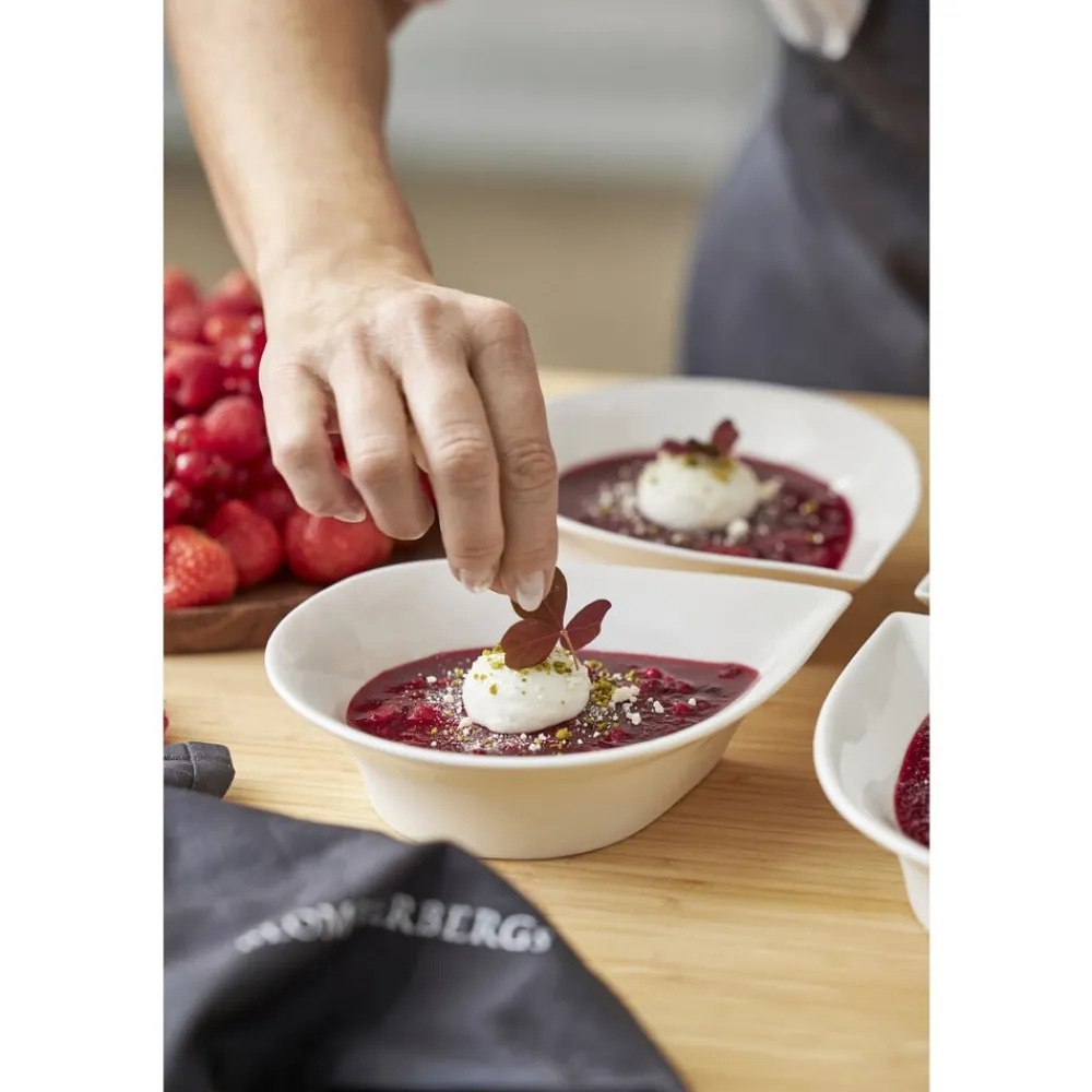 Eksklusiv, dråbeformede porcelænsskåle, der er et spændende supplement til dit service. Meget anvendelig som både skåle og dybe tallerkener. Der kan serveres alt fra iskold jordbærsuppe til havregryn med friske jordbær og cacao nibs. Flere skåle sammen er også velegnede med forskelligt tilbehør til en salatbuffet eller lignende.