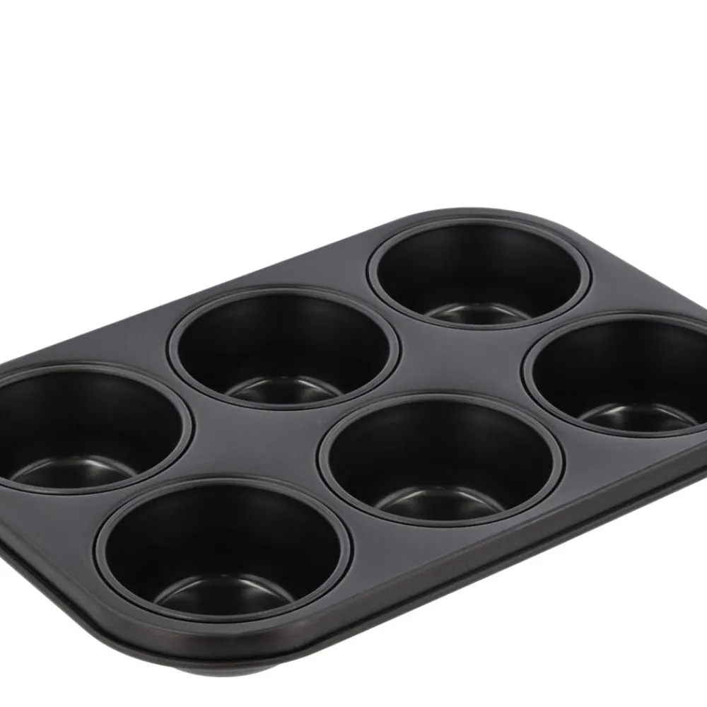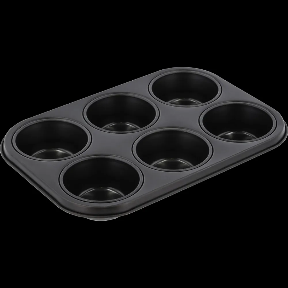 Muffinform med 6 rum/huller, fremstillet i stål med non-stick-belægning, som slipper nemt og er let at rengøre. Hvert hul, dia. 7,1 cm, rummer 0,08 liter, og formen anvendes til bagning af alle typer muffins, portionskager og boller. Du kan også anvende formen i det salte køkken til små bagte kartoffeltoppe, små æggekager og lignende.