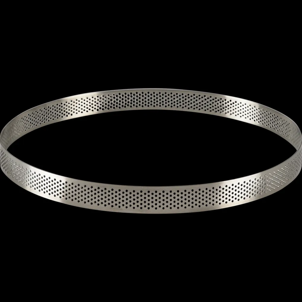 Rund tærtering i perforeret rustfrit stål til sprøde tærter, pizzaer, runde brød og lignende. De fine huller sørger for, at dejen kan komme af med dampen under bagningen. Det sikrer et sprødere resultat, og samtidig glider dejen ikke ned ad siden. Dia. 24 cm, højde 2 cm.
