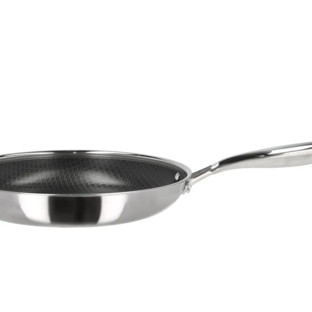 Hybrid 3ply-serien er fremstillet af rustfrit stål med keramisk hybrid-belægning, der sikrer gode stegeegenskaber og let rengøring. Bemærk, at 3-ply-konstruktionen med sin struktur af to lag rustfrit stål og et lag aluminium i midten, opvarmes meget hurtigt. Vær derfor forsigtig med ikke at overophede, men varm gryder og pander langsomt op.