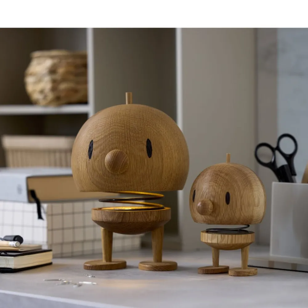 Bimble og Bumble repræsenterer de allerførste Hoptimister fra designerens hånd: En kjoleklædt pige med smilende øjne og en opmærksom dreng med split på hovedet. De glade Hoptimister er i dag en del af dansk designhistorie og skaber glæde rundt om i hele verden.