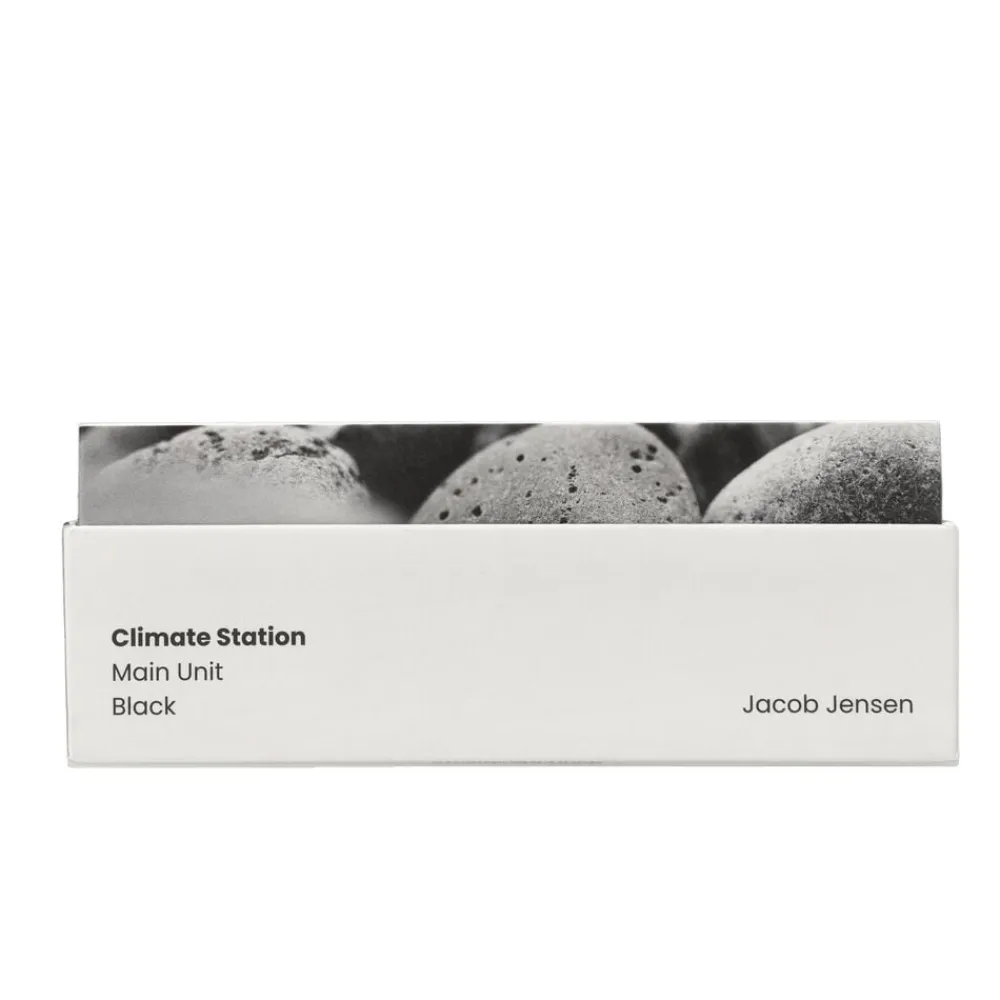 Klimastationen er en genfortolkning af en Jacob Jensen-klassiker. Den viser temperaturen der, hvor den er placeret indendørs. Klimastationen har et klart E-Ink-display, som ikke kun er behageligt for øjnene, men også reducerer strømforbruget betydeligt. Desuden er klimastationen magnetisk og leveres med et bordstativ og et vægophæng, så den nemt kan placeres på et bord eller monteres på en væg. Der medfølger 3M tape til ophængning, hvis man ikke ønsker at bruge skruer. Den bruger 2 CR2450-batterier (medfølger ikke).