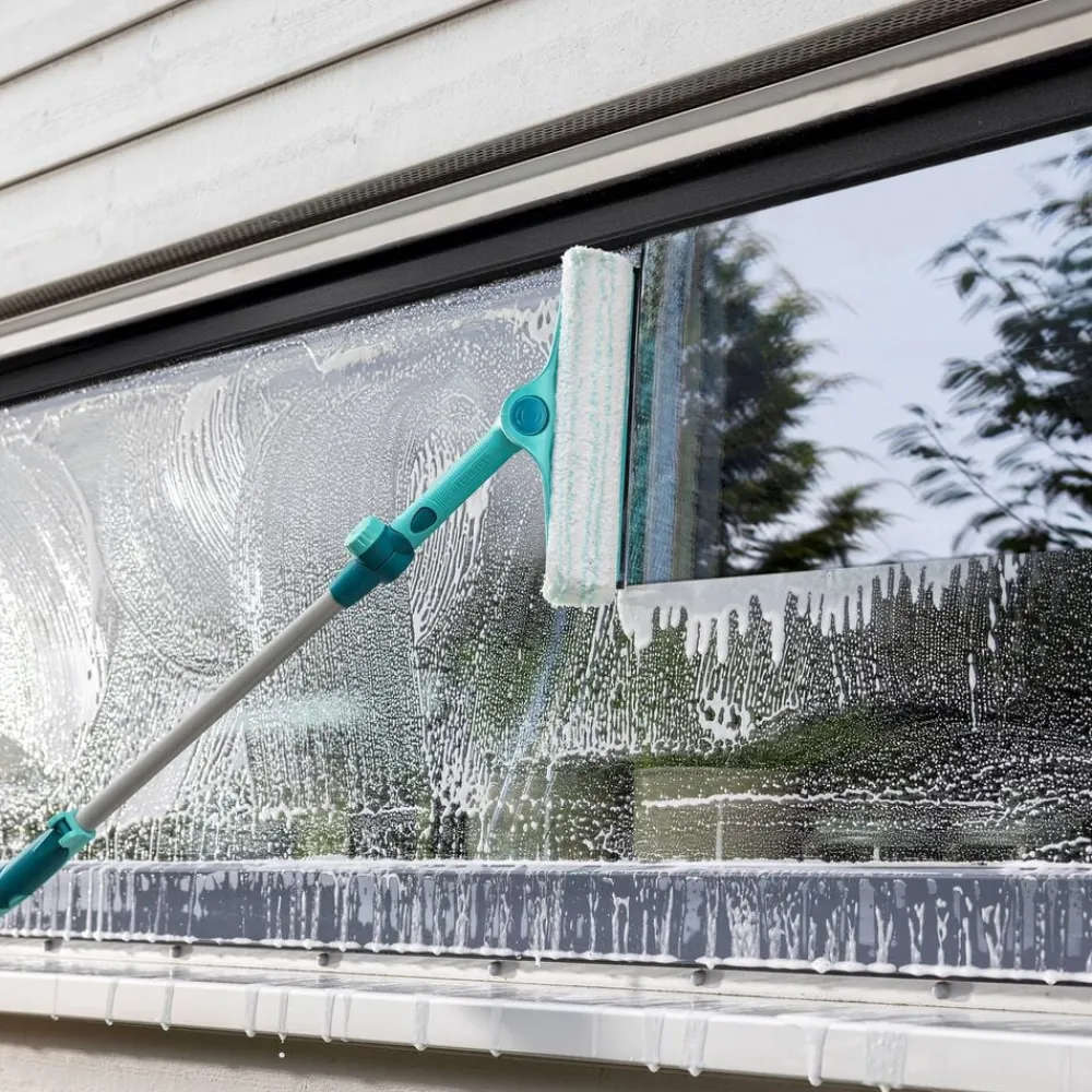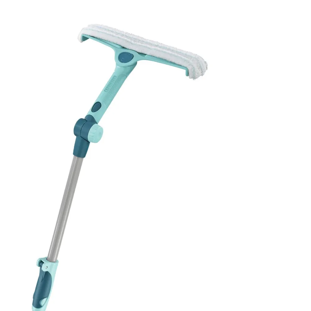 En praktisk løsning til rengøring af både vinduer og vinduesrammer. Den smarte 4i1 vinduesvasker har en 32 cm bred vaskepude og et teleskopskaft, der kan justeres fra 130 til 210 cm, så du uden besvær kan nå selv de høje vinduer. Det bevægelige led med låsemekanisme på håndtaget gør det let at fastholde den rette vinkel. Vaskepuden kan tages af og vaskes i maskine ved 40 °C efter brug.
