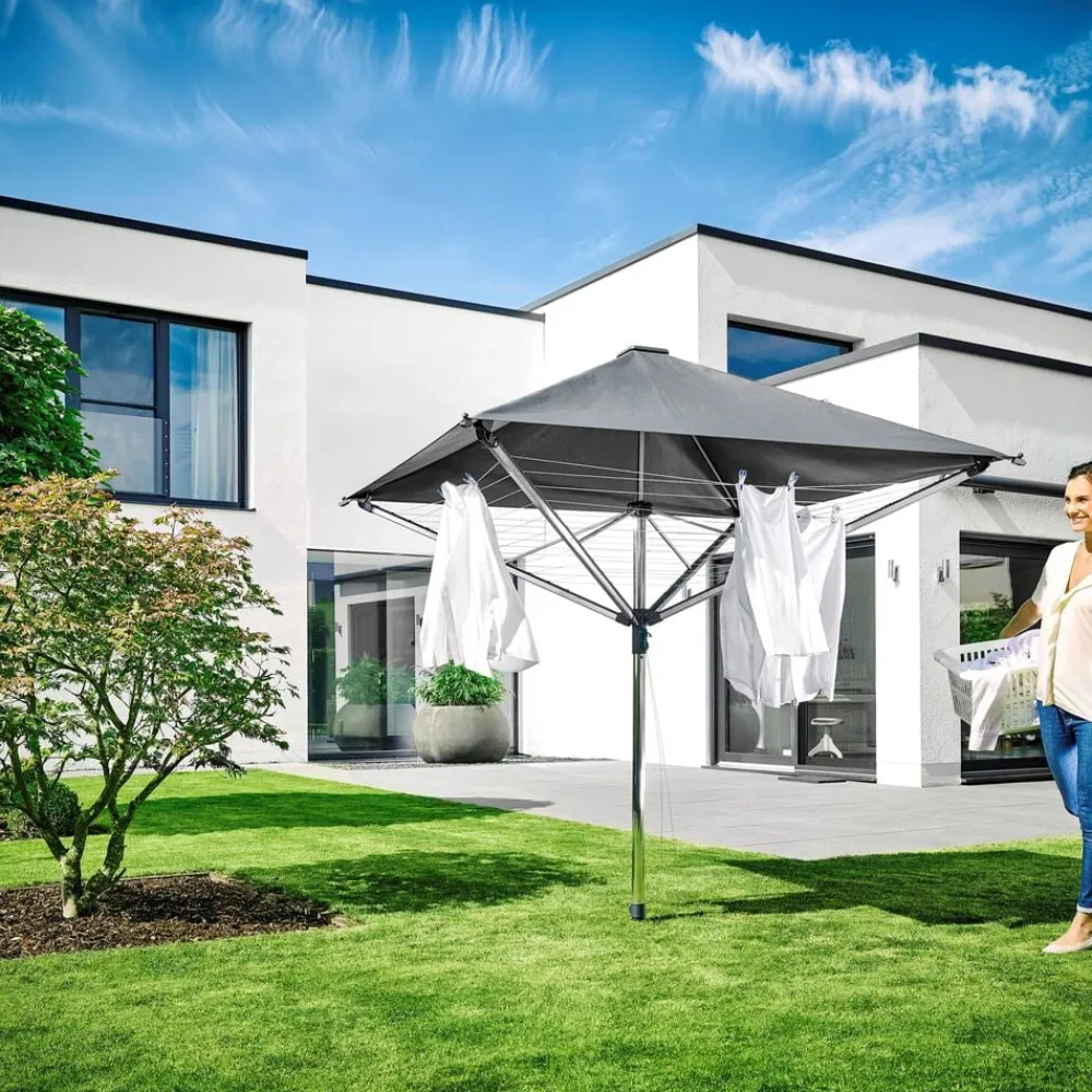 Tørrestativet, LinoProtect 400, gør det nu muligt at tørre tøj udendørs selvom det regner. LinoProtect er monteret med et tag, som gør, at man kan lade tøjet hænge ude selvom det begynder at regne. Det innovative tag gør det muligt at tørre tøj udendørs fra det tidlige forår til det sene efterår. Endnu en fordel ved dette tørrestativ er, at det stopper alle UV-stråler. Idet linerne altid er dækket af taget er de altid er beskyttet mod vejr og vind, og linerne forbliver derfor rene. For enden af de fire arme er der to bøjleholdere. 40 meter tørreplads.