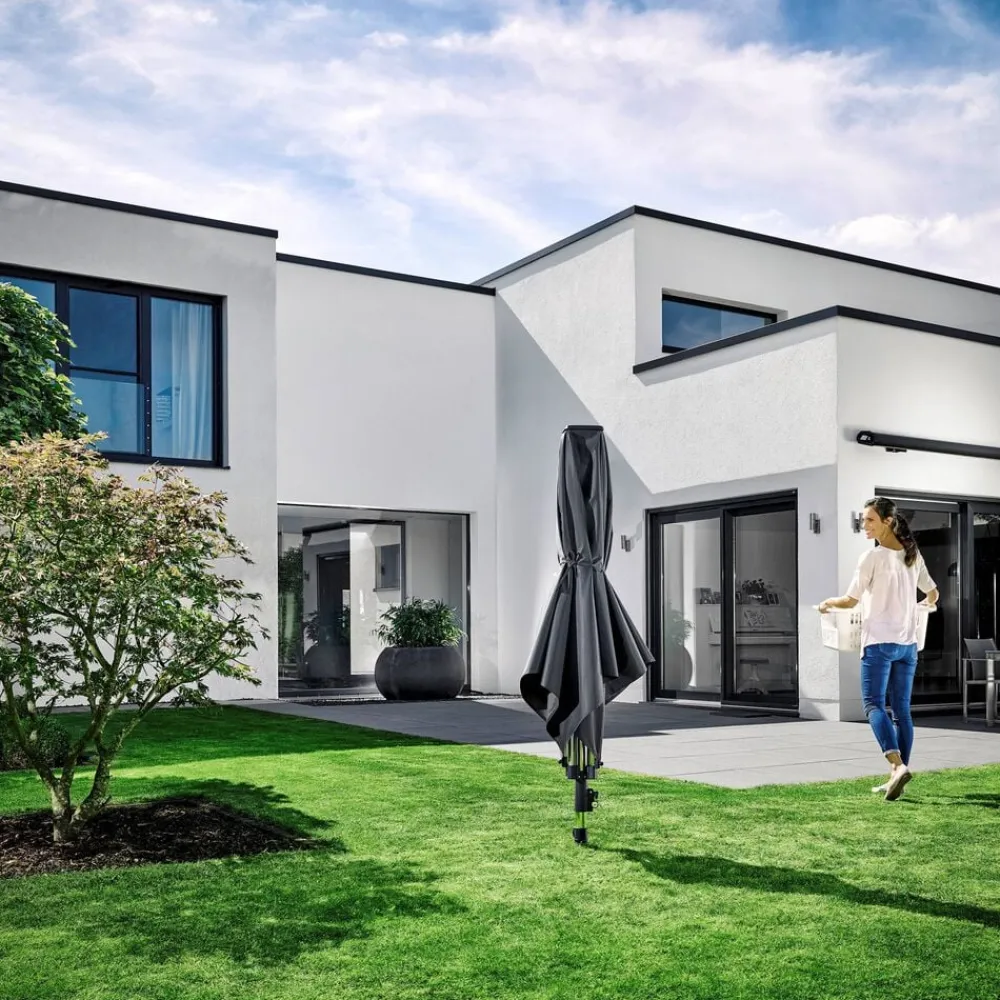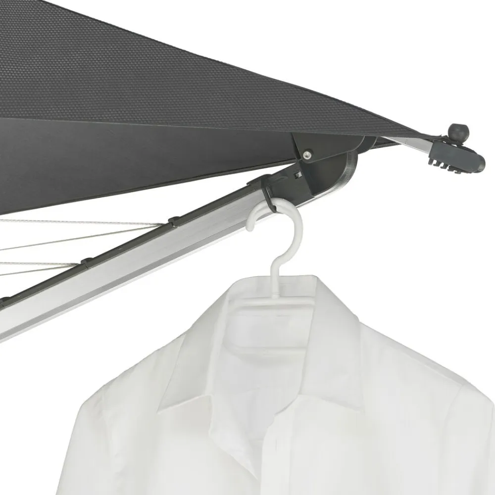 Selve stativet har en anordning som gør, at stativet ikke kan “lette” i blæsevejr (op til vindstyrke 5). Tørrestativet er supernemt at åbne, man trækker bare i en snor og så er stativet slået op. Der medfølger en holder til nedstøbning. LinoProtect 400 tørrestativet er lavet i aluminium og produceret på Leifheit’s egen fabrik i Tyskland, og er certificeret af TüV/ GS. 3 års garanti.