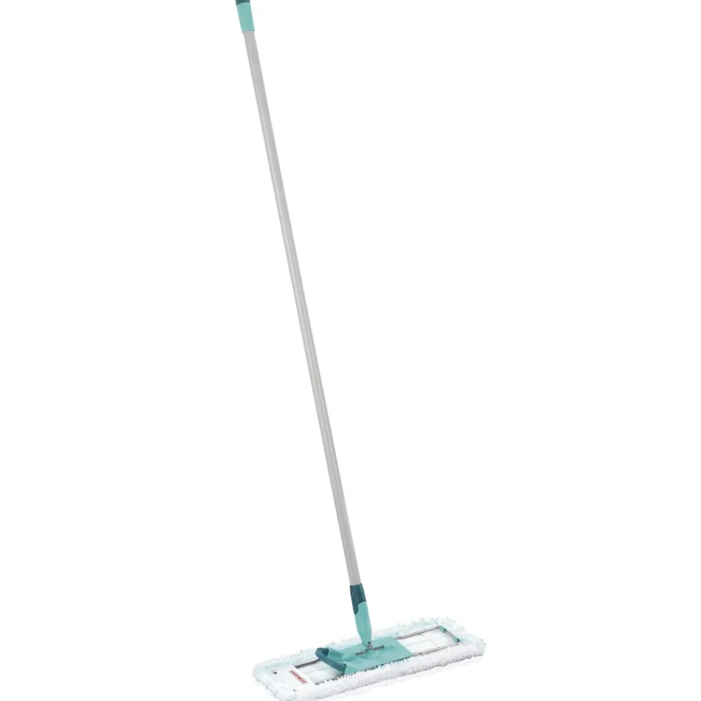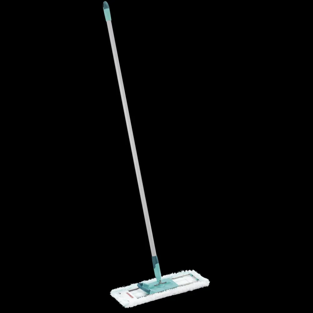 Gulvmoppe på 42 cm bredde med 140 cm stålskaft. Et 360° drejeled mellem skaft og fod giver skånsom gulvvask for hænder og ryg, og det er samtidig lettere at gøre rent under møbler og senge. Kluden løsnes nemt fra holderen med et tryk med foden.
