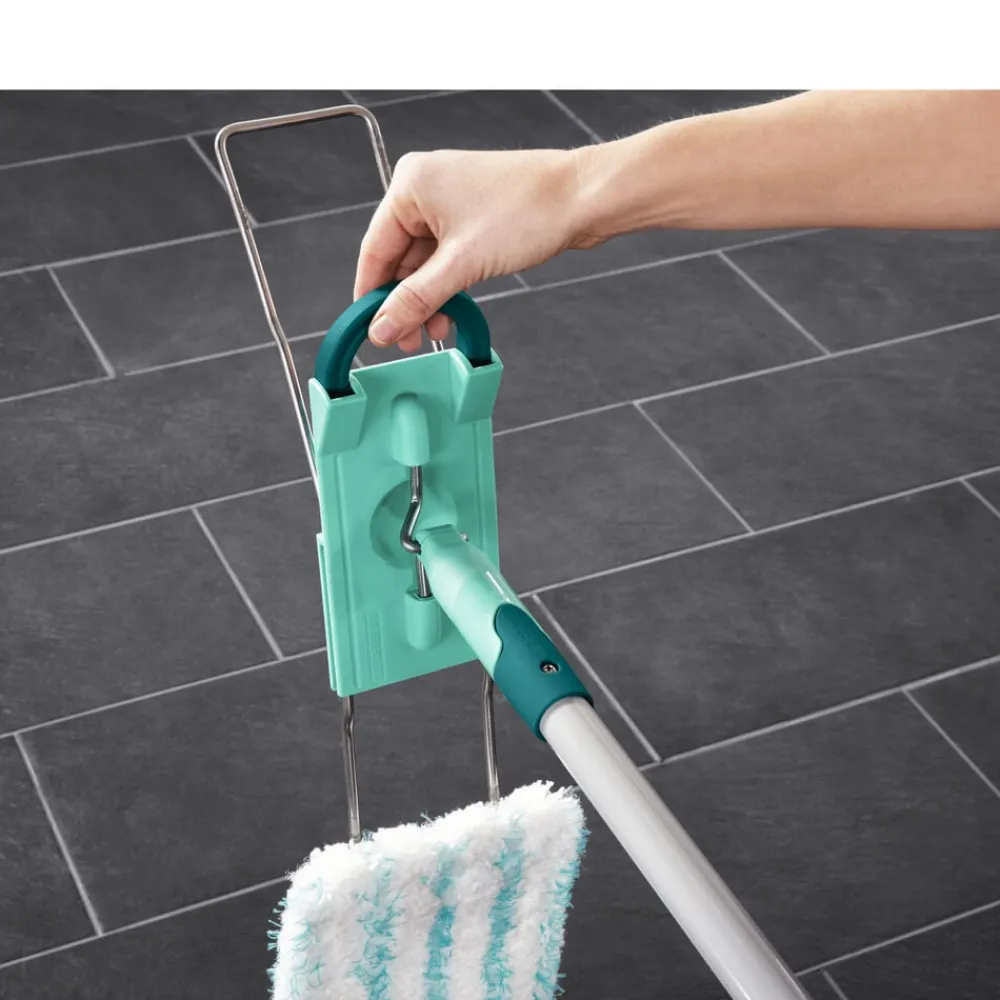 Med det fleksible 360 ° drejeled kan du effektivt føre gulvmoppen rundt i bløde sving og komme ubesværet omkring bord- og skabsben og under møbler og senge. Dobbeltfiber-kluden når de mindste fordybninger og fjerner selv genstridigt snavs grundigt.